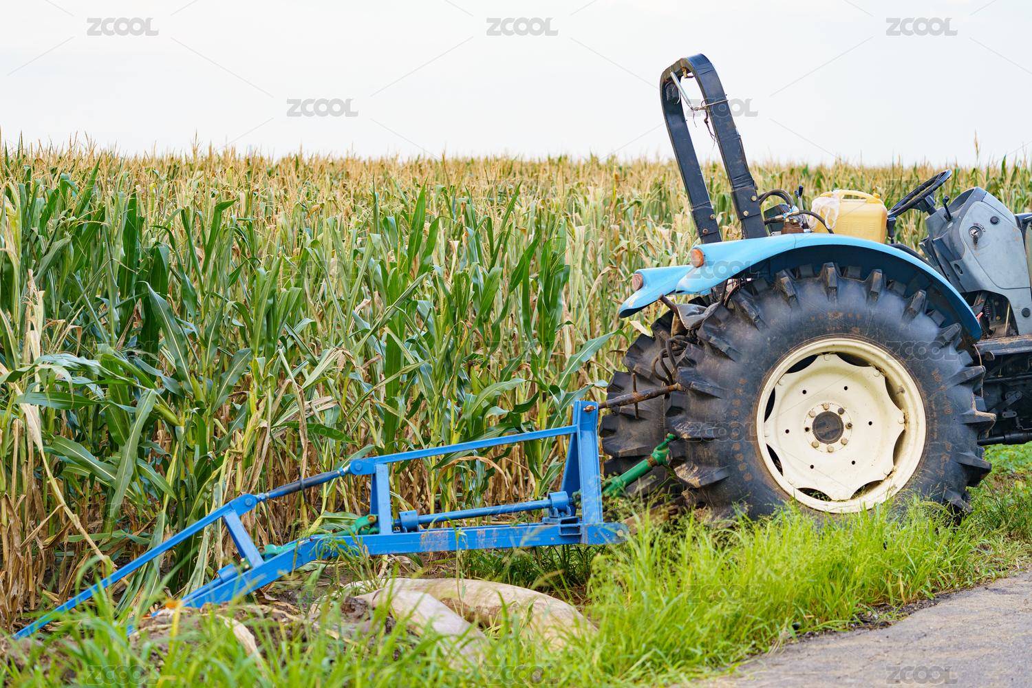 夏季傍晚停在農(nóng)田旁排水的農(nóng)機(jī)