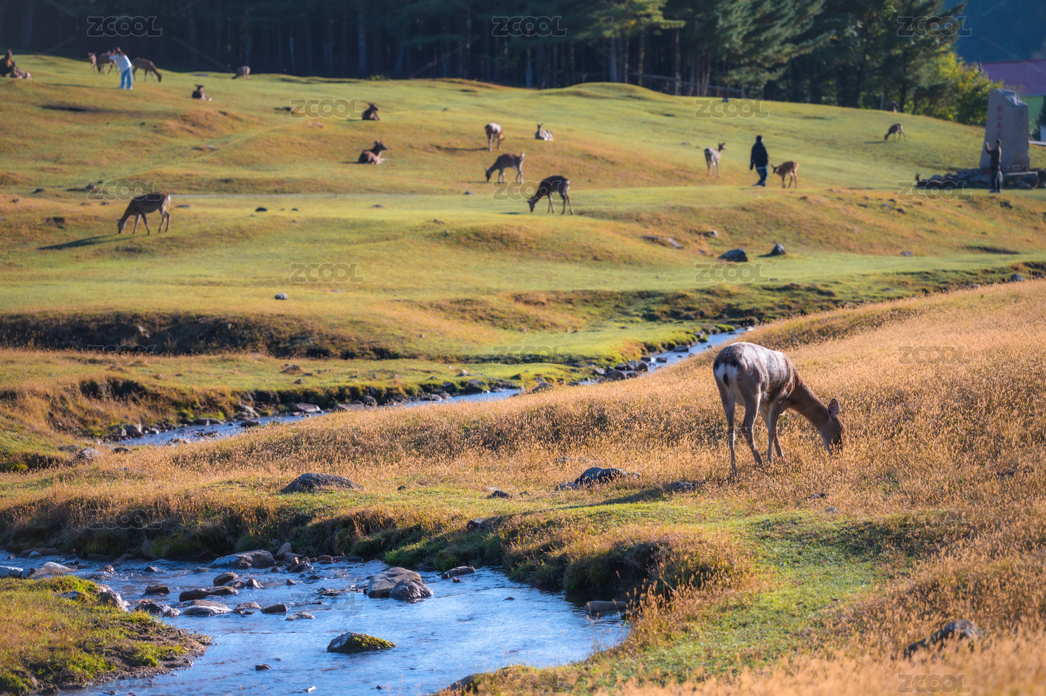 黑龍江伊春金山鹿苑一群鹿在風(fēng)景優(yōu)美的草坪