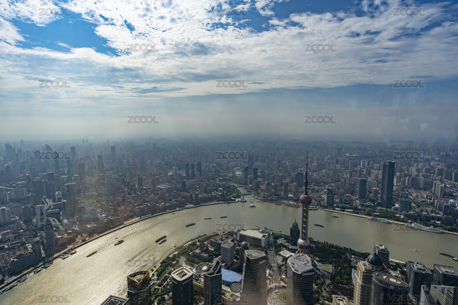 上海金融中心上俯瞰陸家嘴及黃浦江對(duì)岸城市風(fēng)光,中國(guó)上海