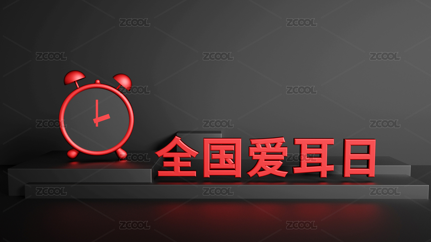 由鬧鐘和黑色幾何空間組成全國愛耳日場景