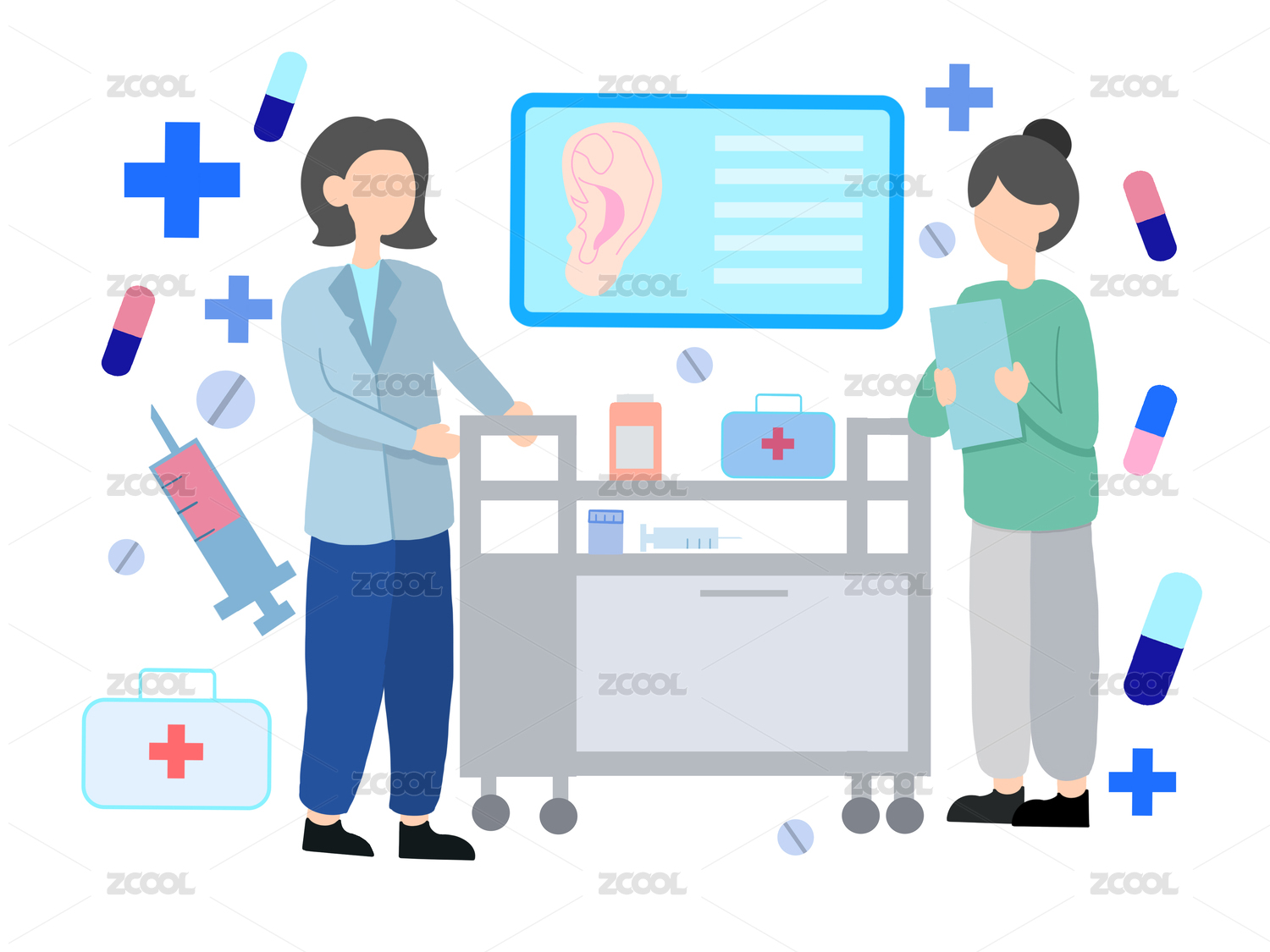 藍色扁平風(fēng)耳科醫(yī)生護士醫(yī)務(wù)室醫(yī)院矢量元素