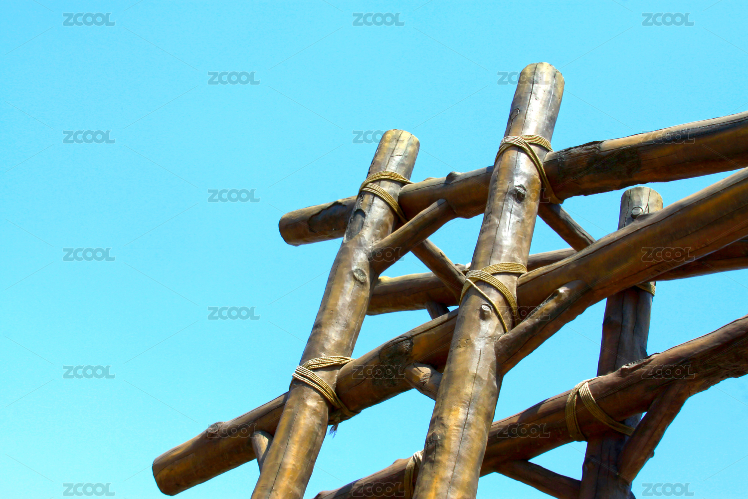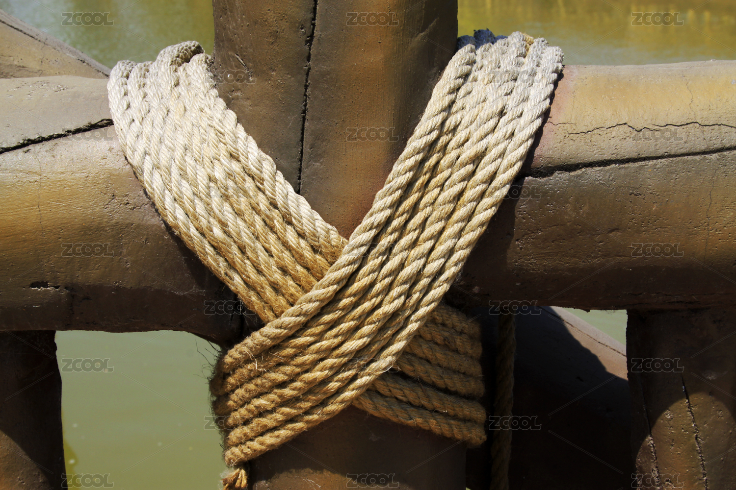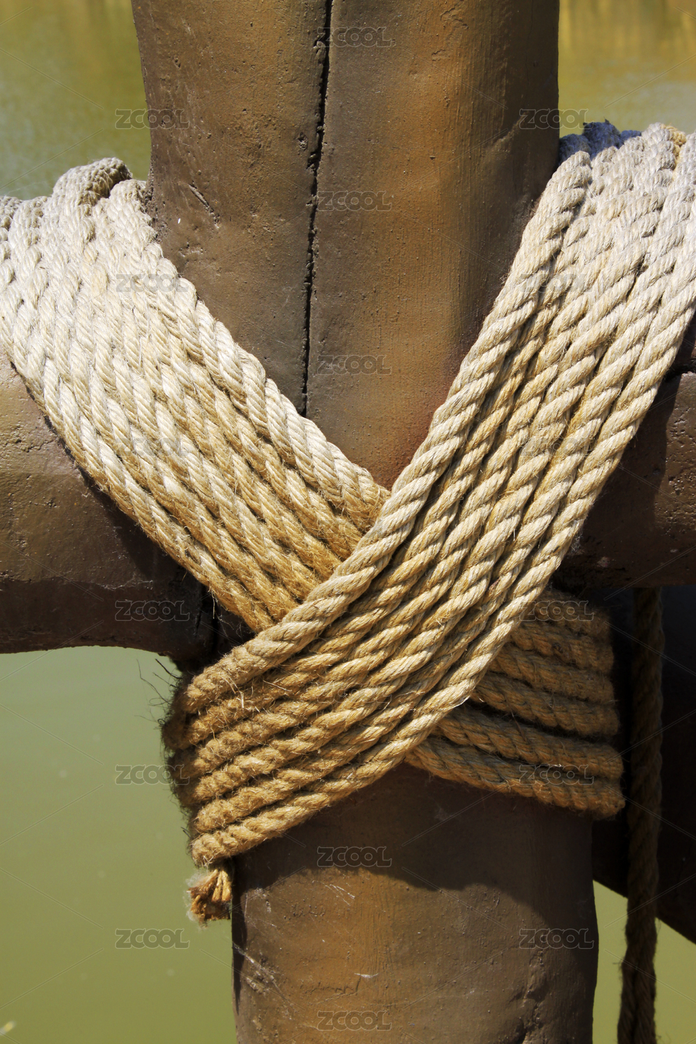 繩結(jié)纏繞在木柱上