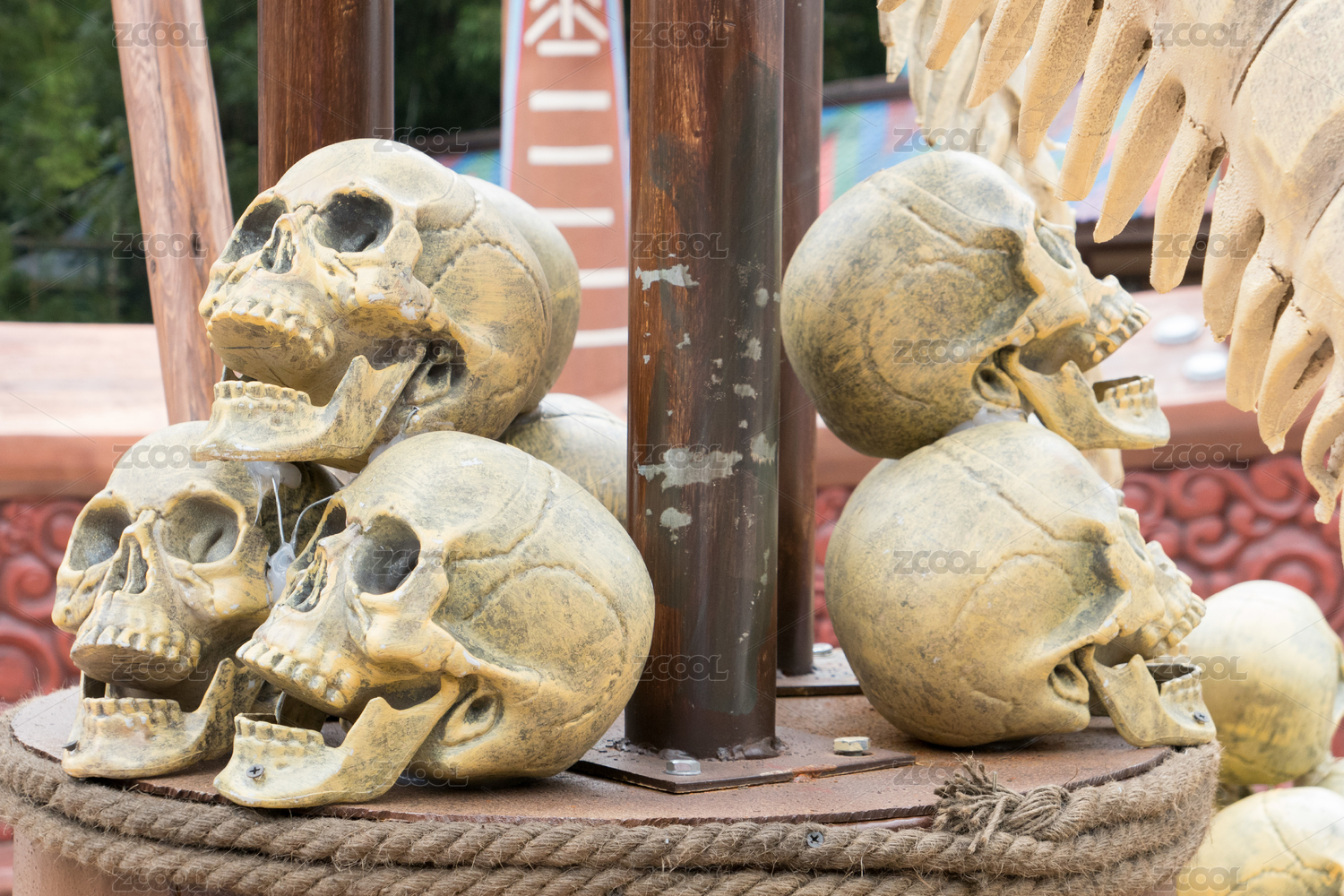 骨頭 恐怖 死亡 萬圣節(jié) 頭 木臺(tái) 繩索