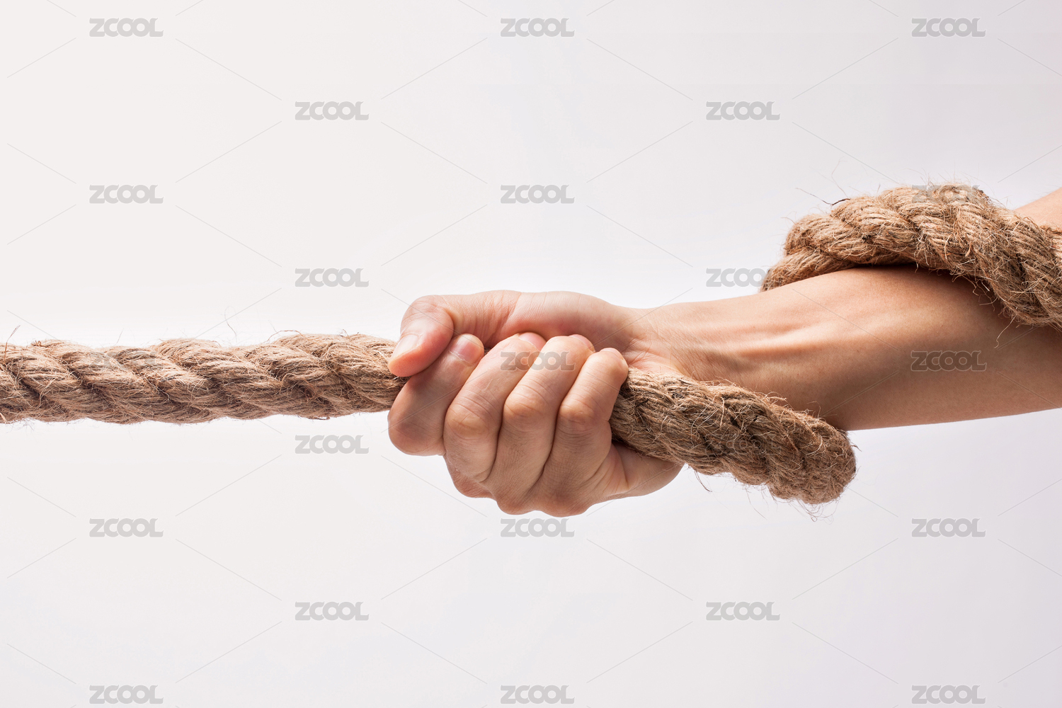 單手緊握繩索的特寫