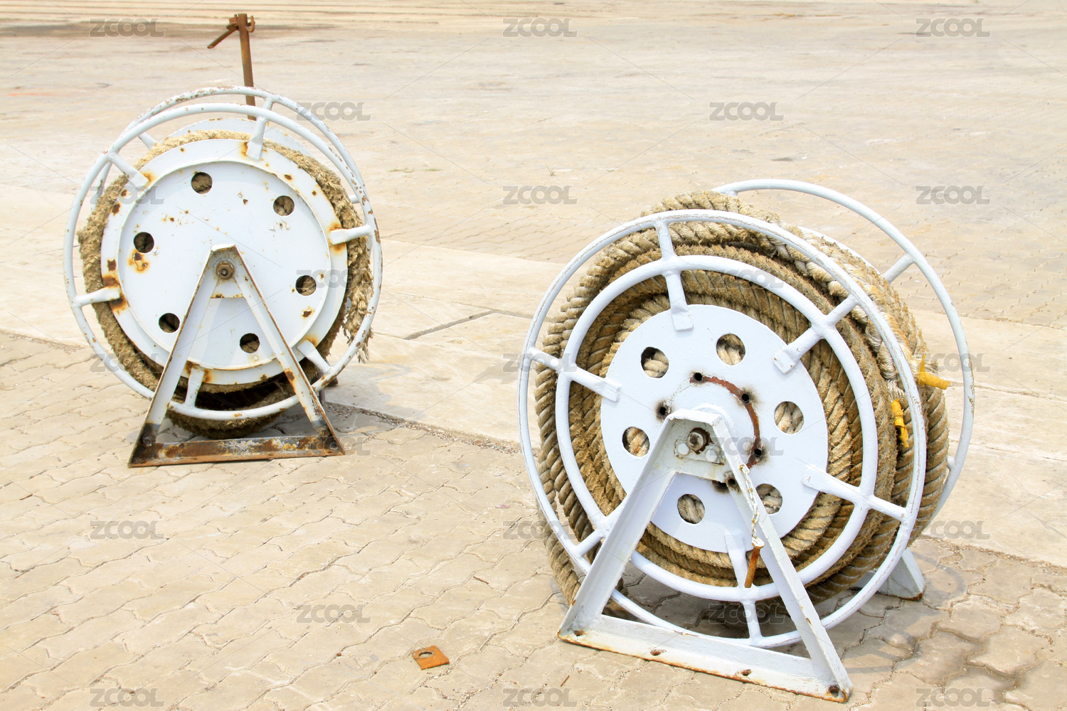 兩個(gè)帶繩索的金屬線軸