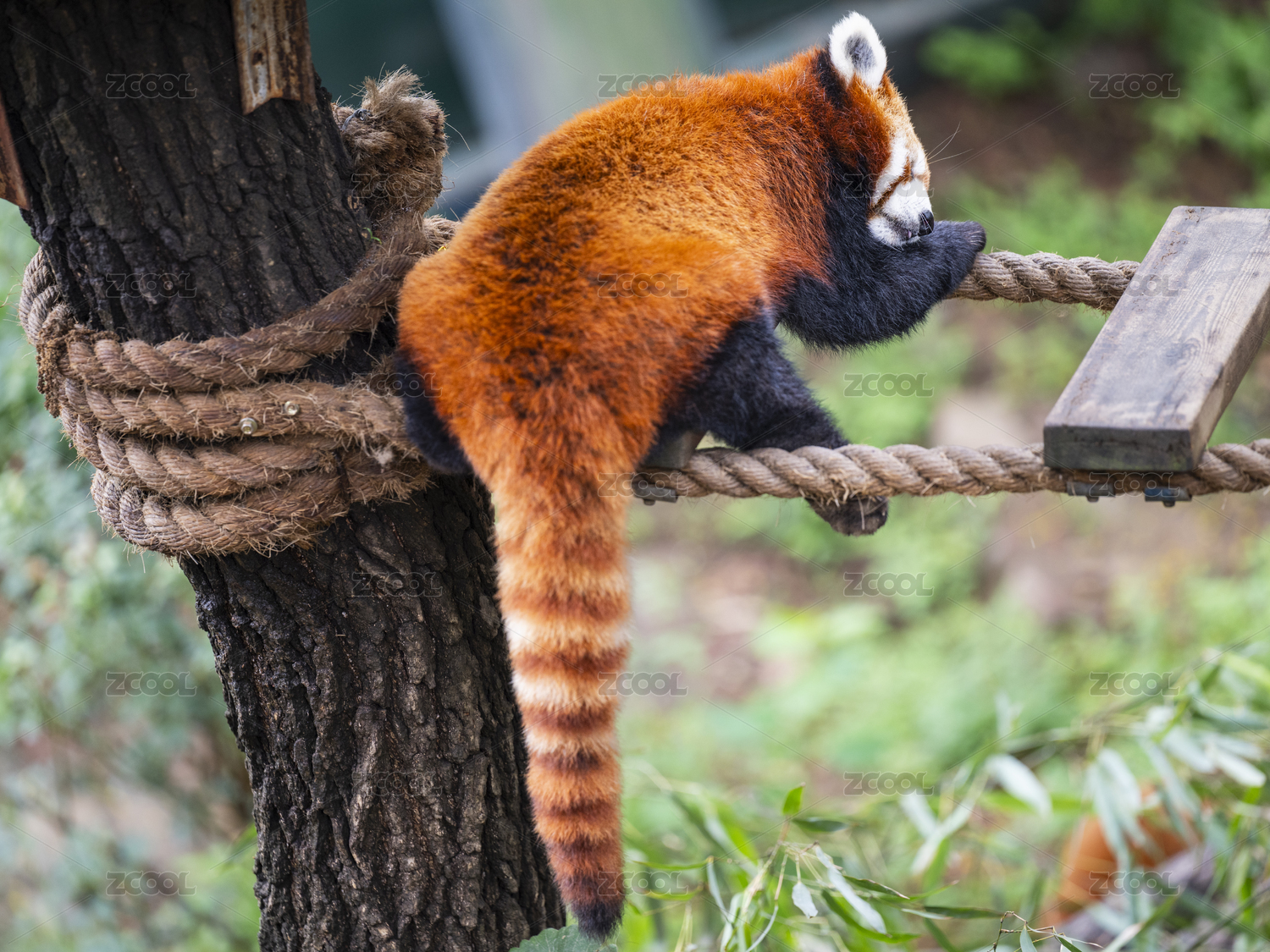 小熊貓?jiān)诶K索上休息