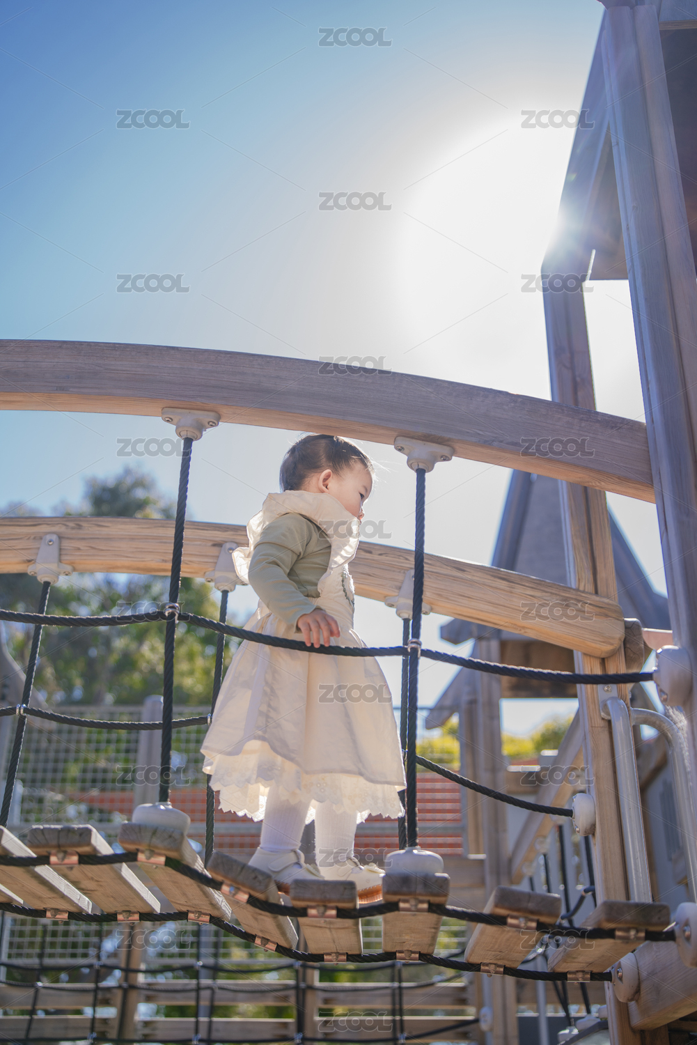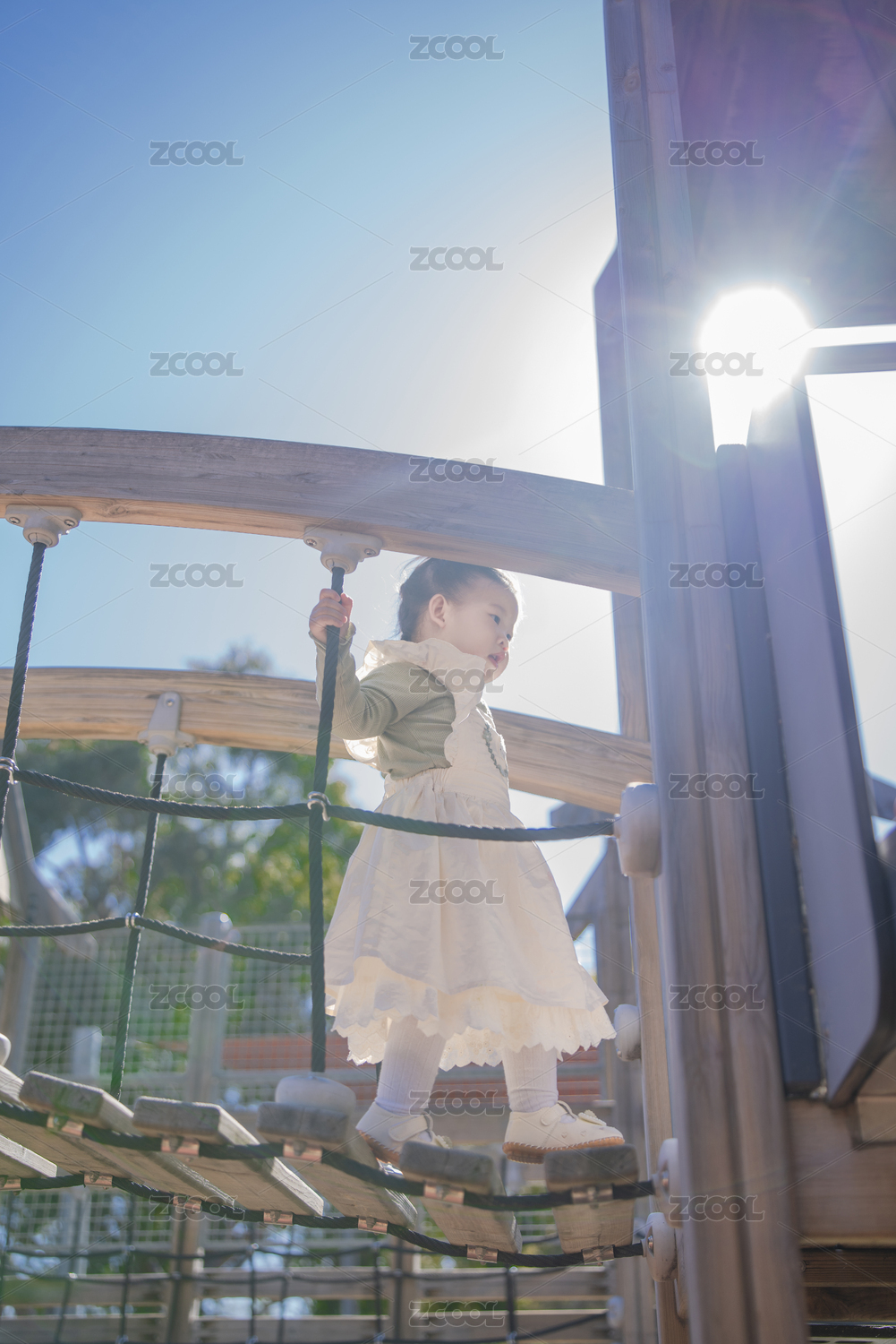 繩索通道勇敢通行闖關(guān)的勇敢幼兒小女孩