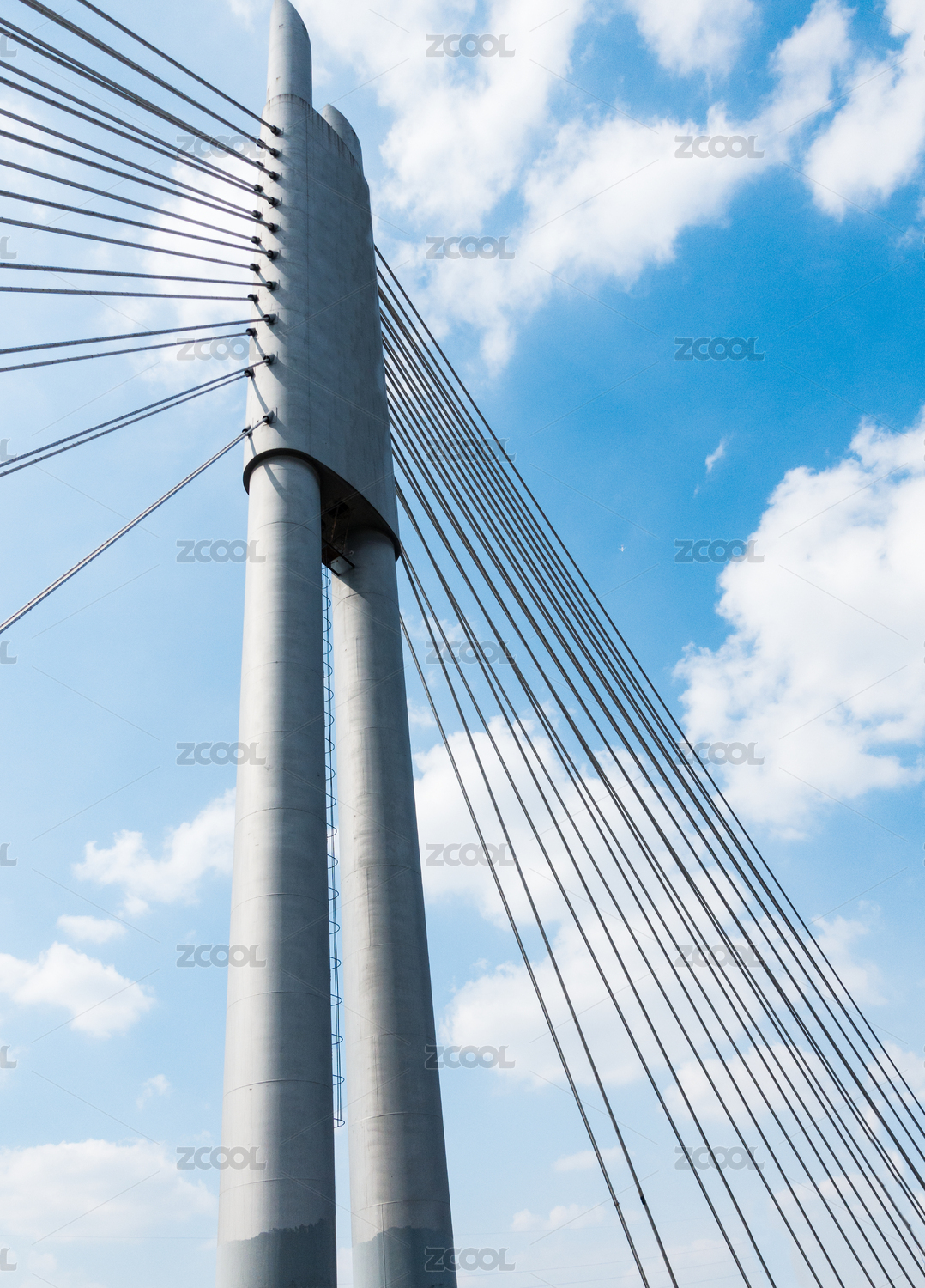 藍(lán)天白云下的斜拉索橋