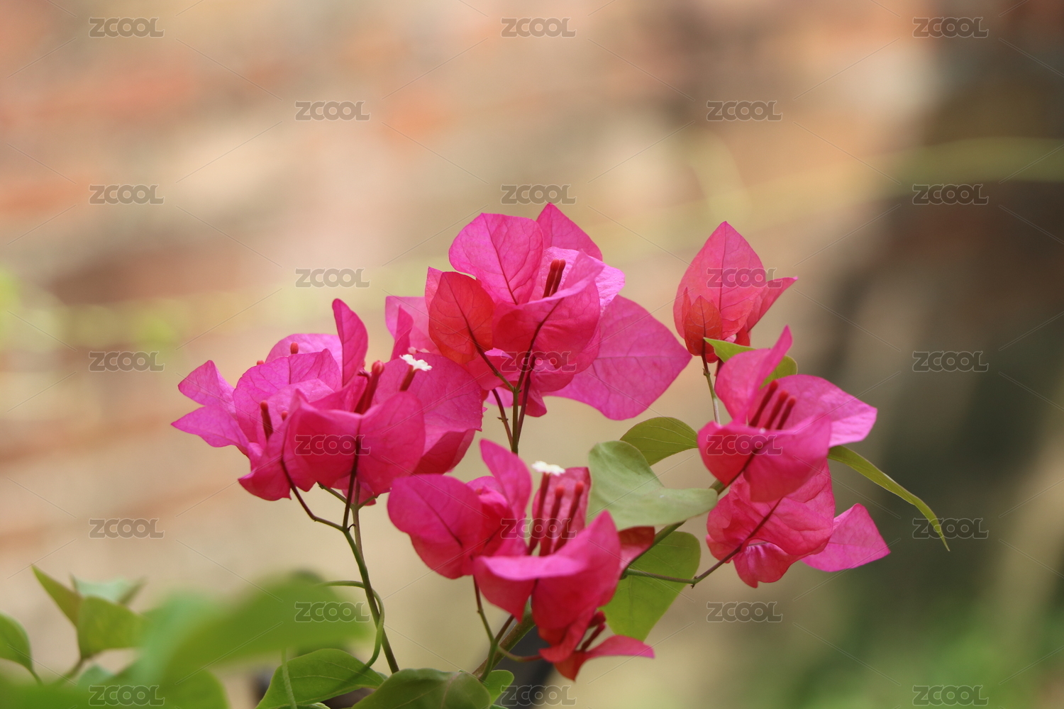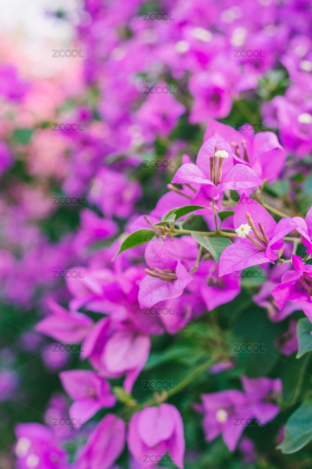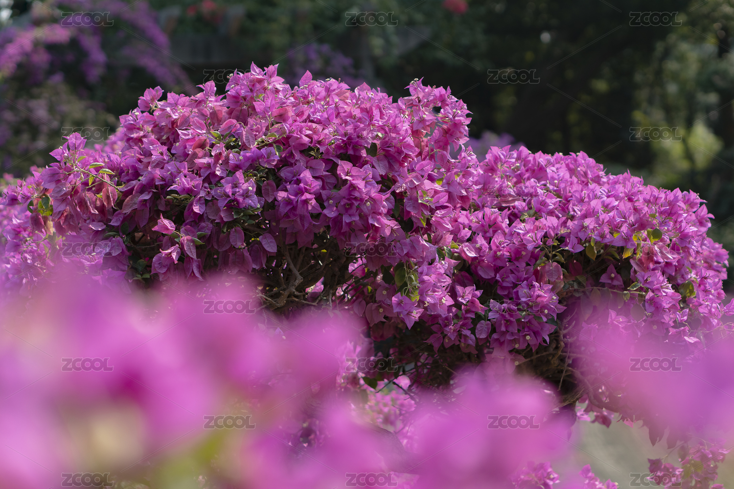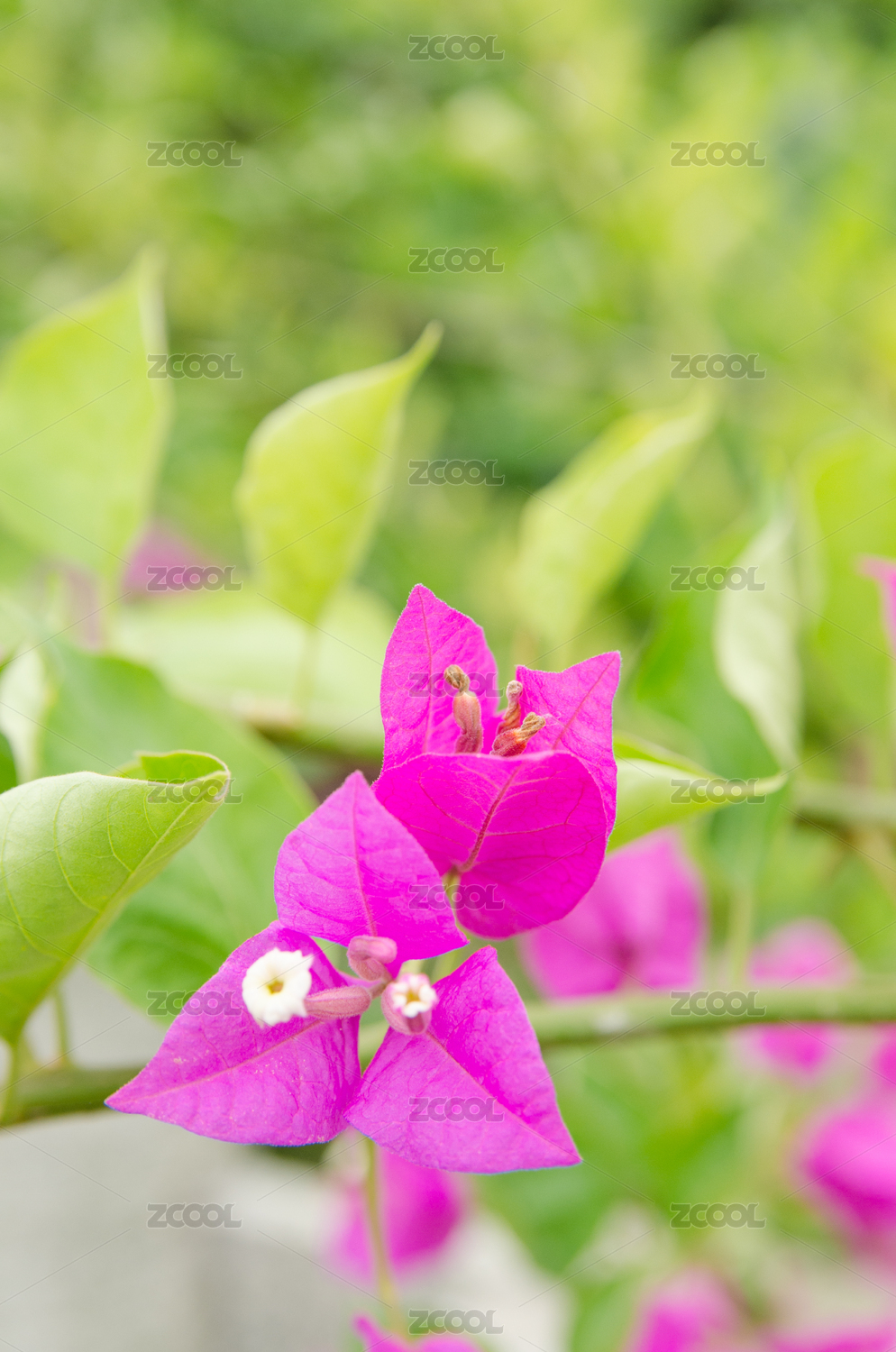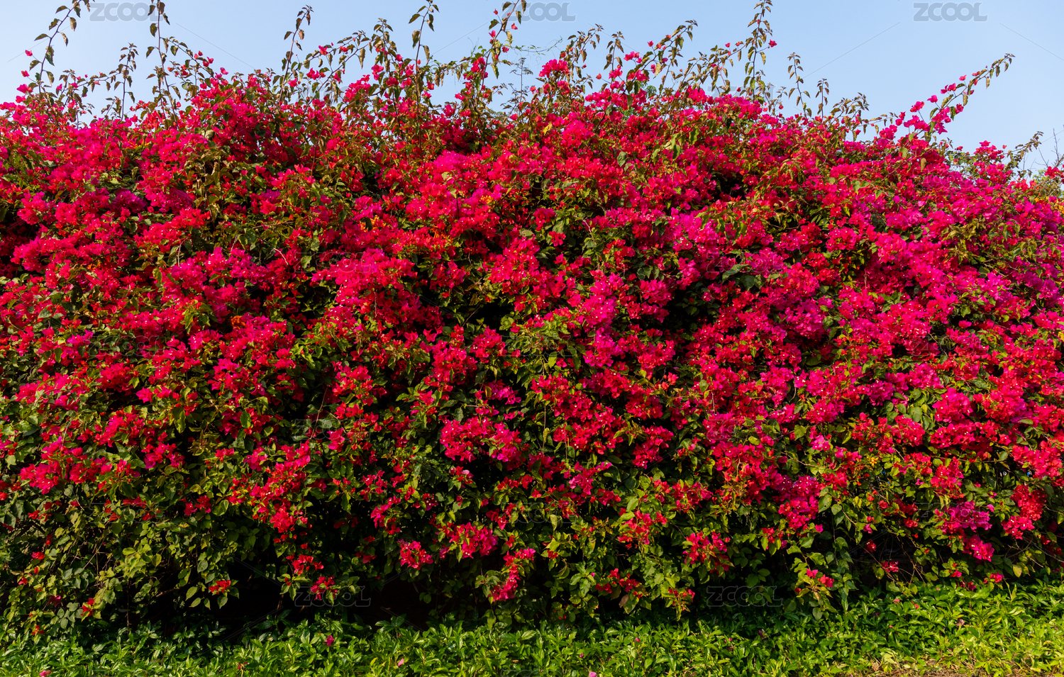 藍(lán)天下欄桿上盛放的粉色三角梅花卉盆栽