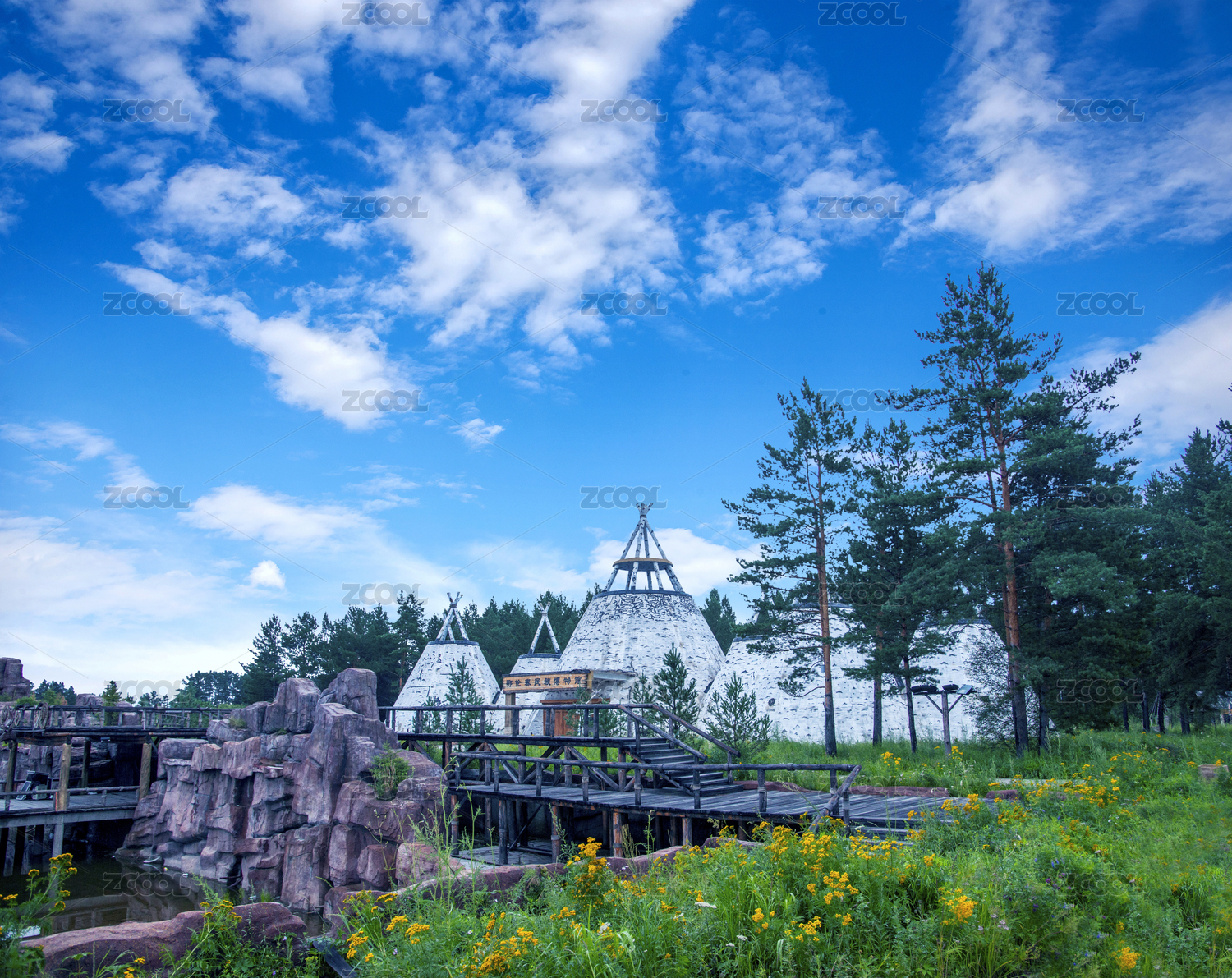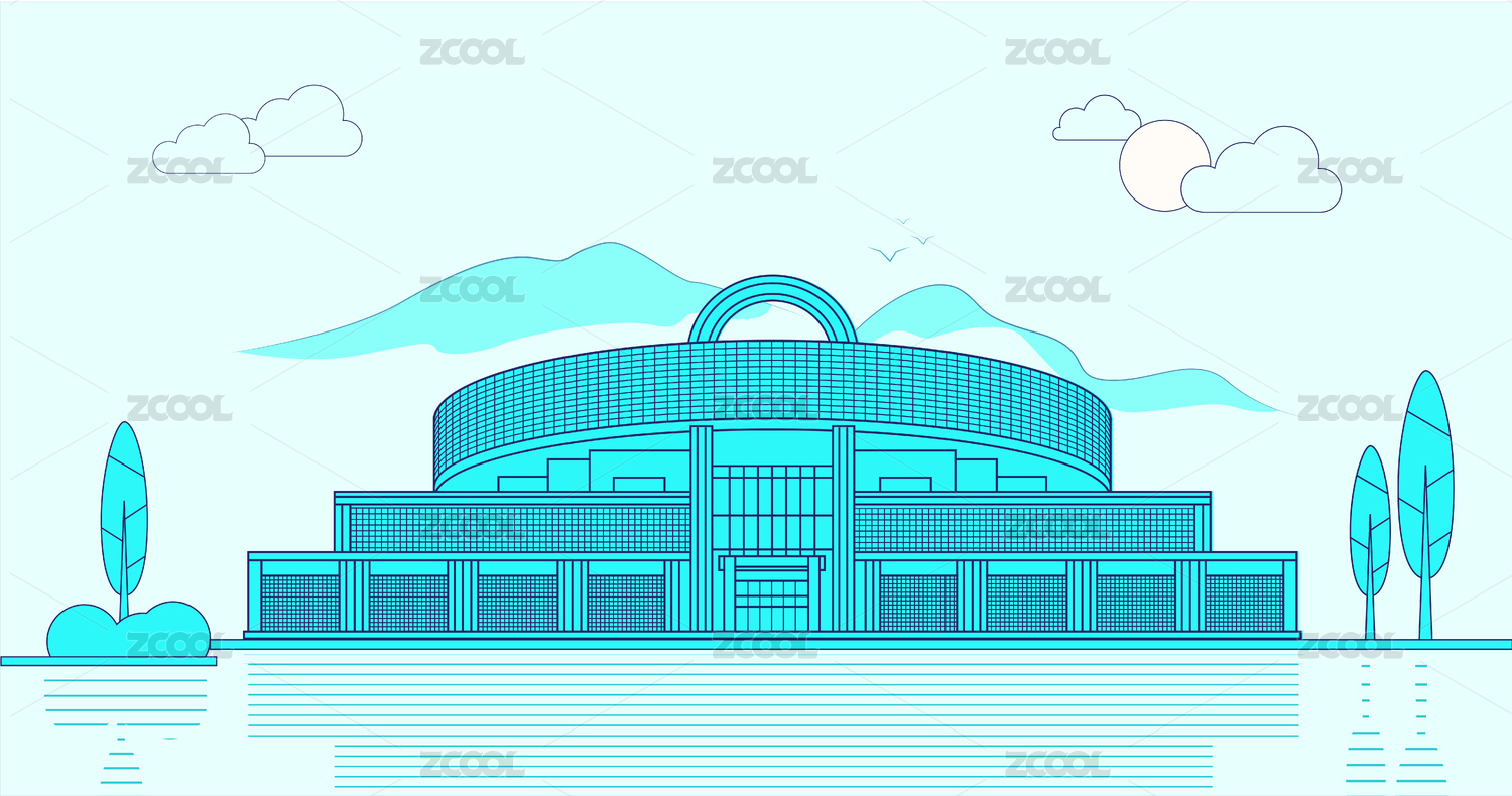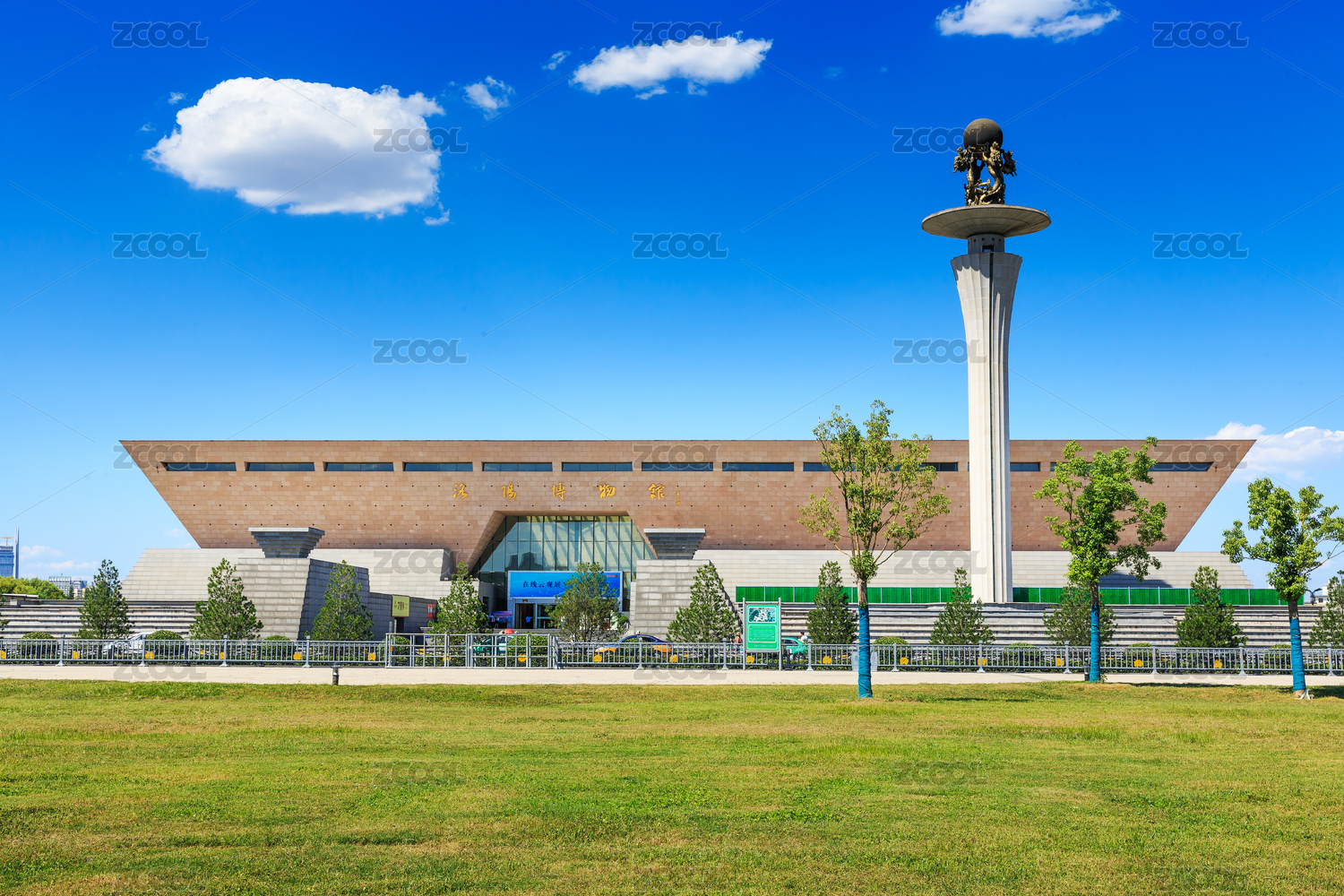 藍(lán)天白云下草坪后的中國(guó)河南省洛陽(yáng)博物館