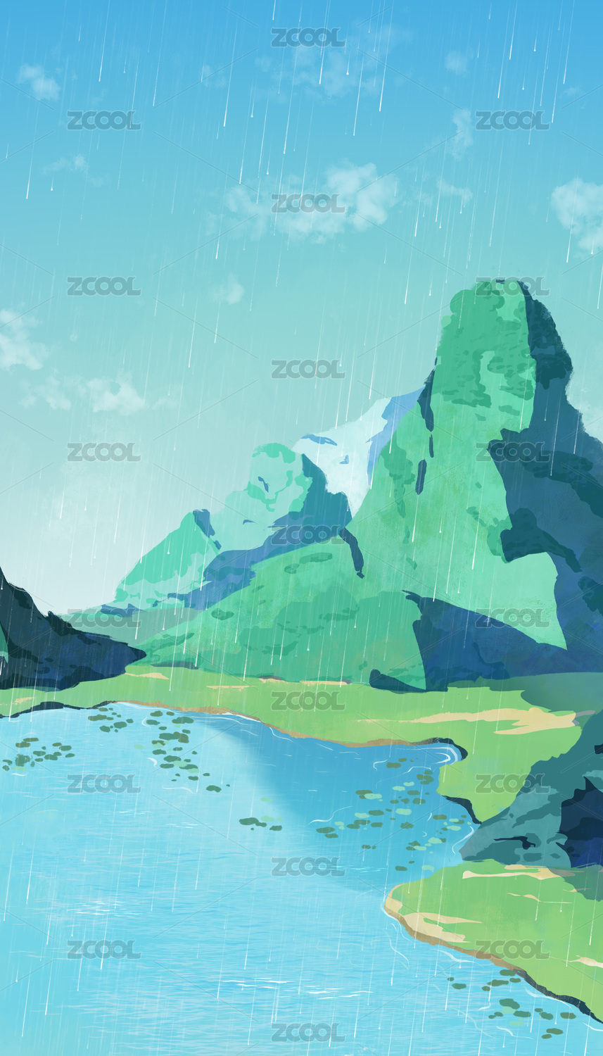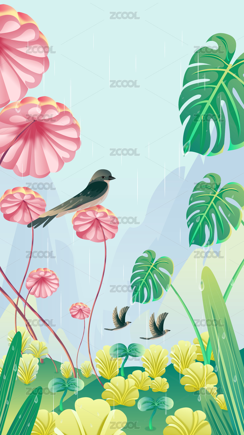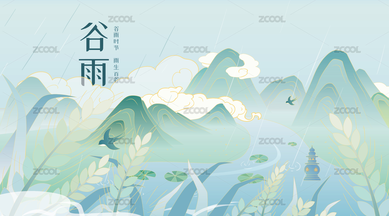 手繪矢量谷雨傳統(tǒng)二十四節(jié)氣插畫海報