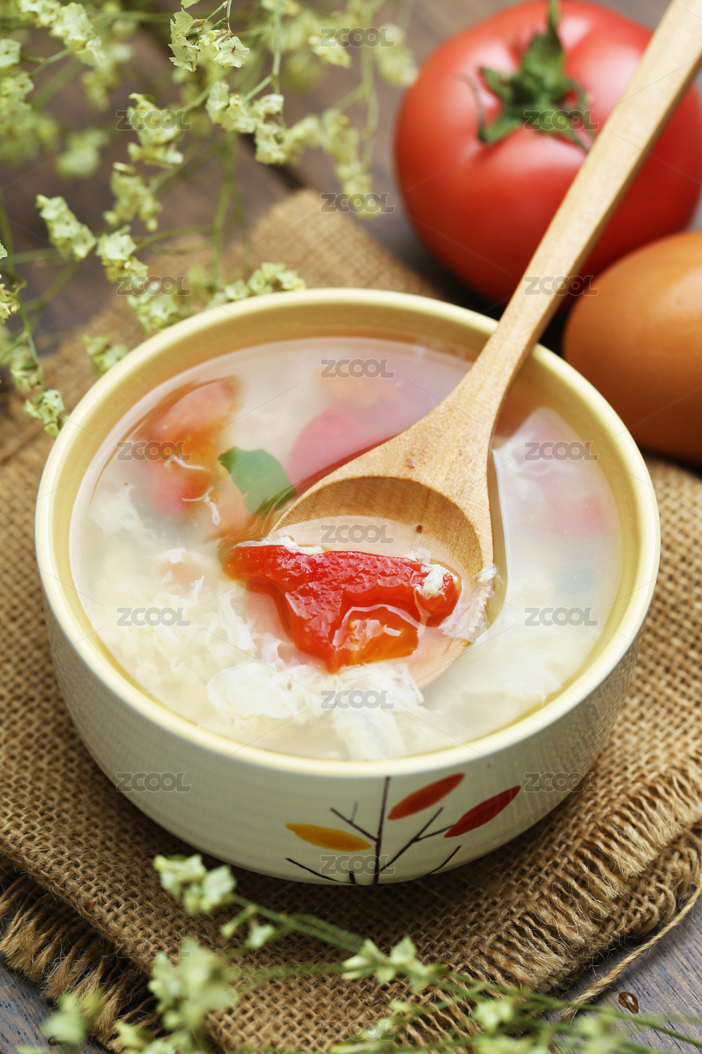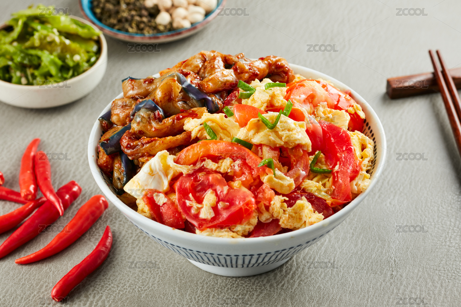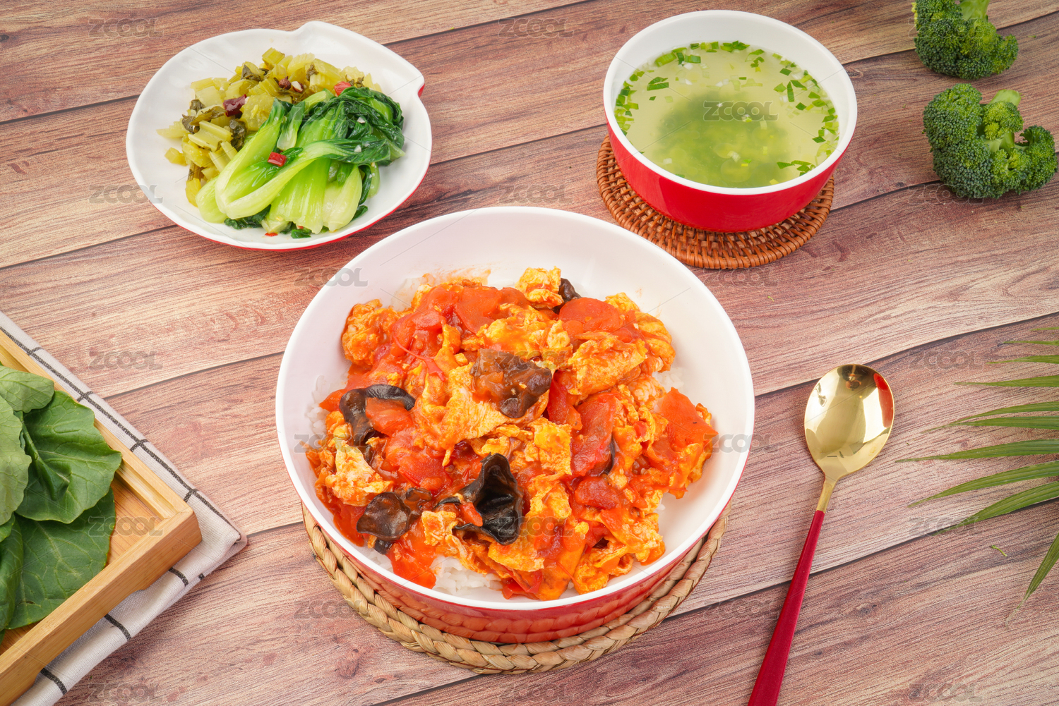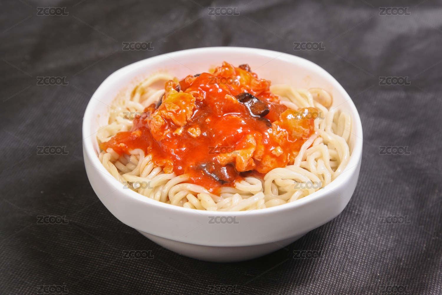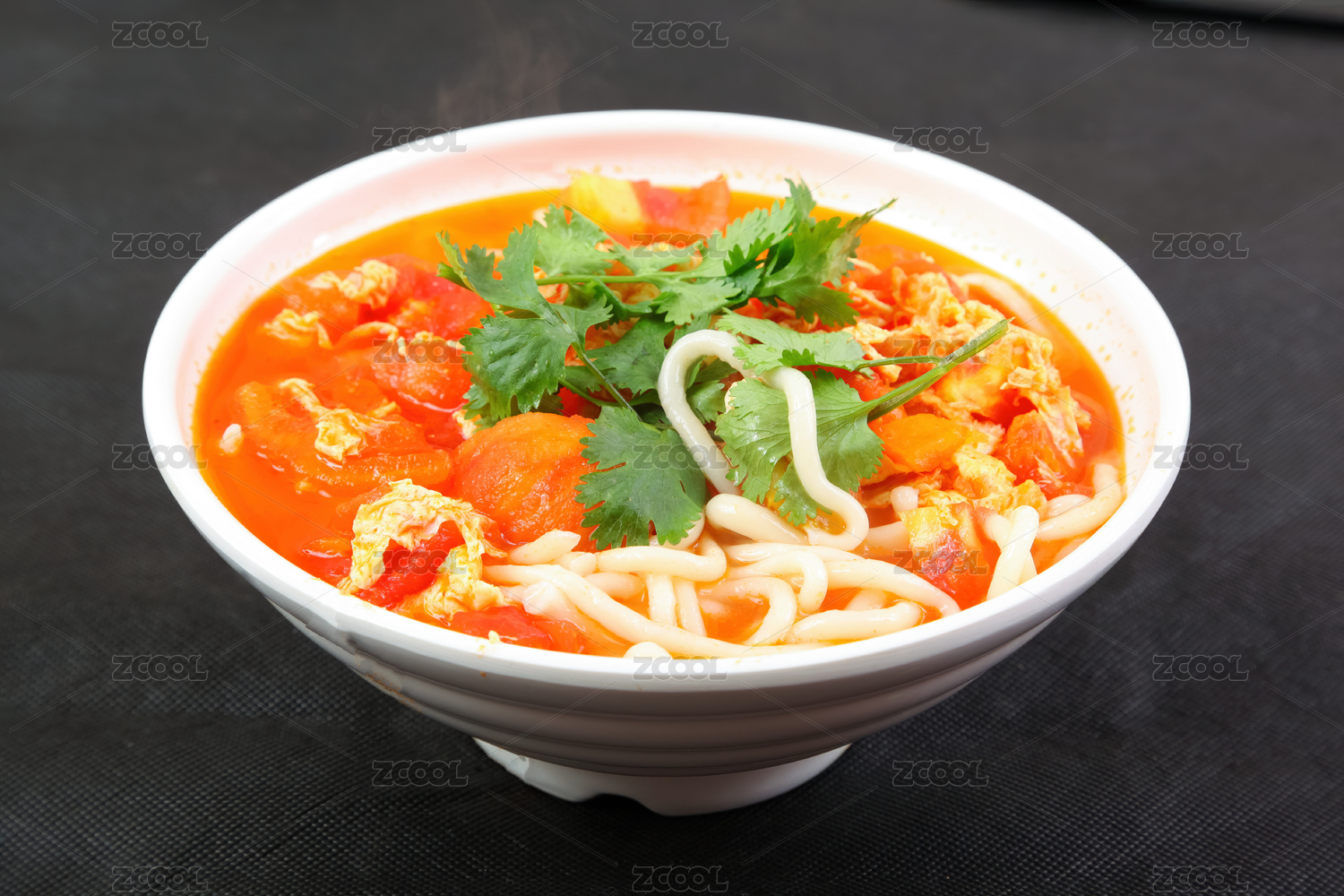 西紅柿雞蛋打鹵面特寫(xiě)木桌面背景