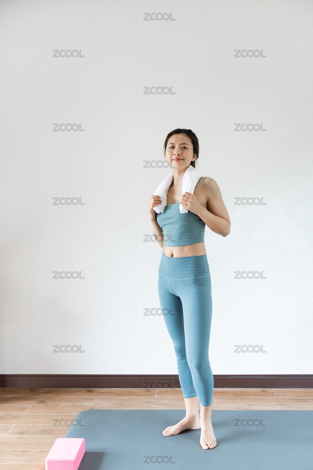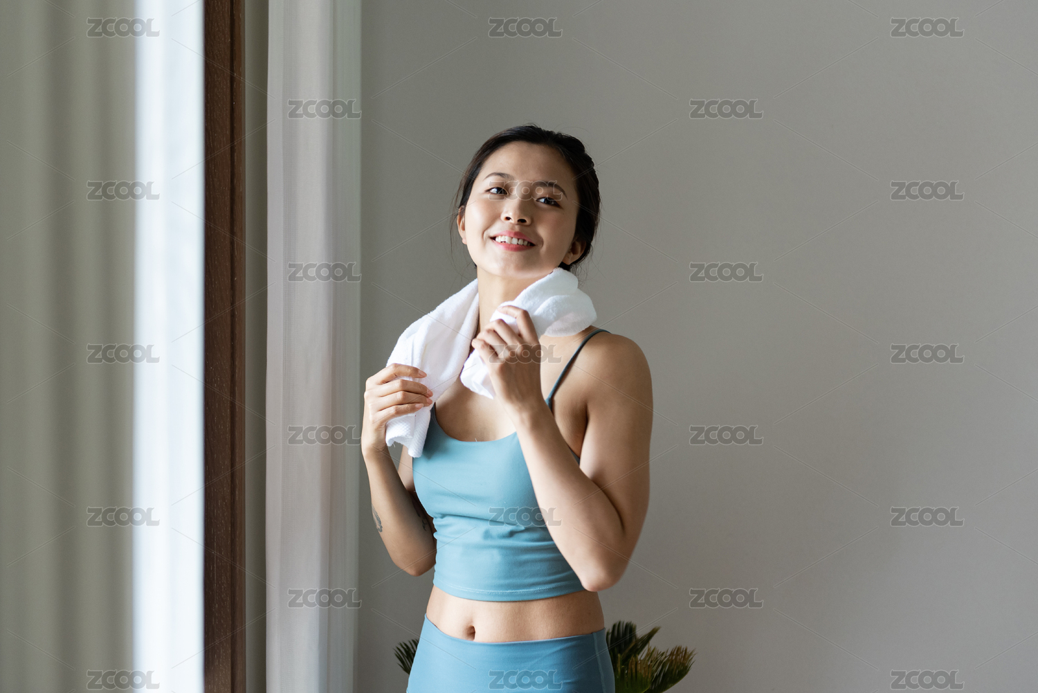 健身后擦汗的亞洲少女