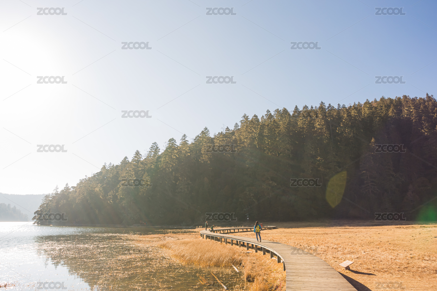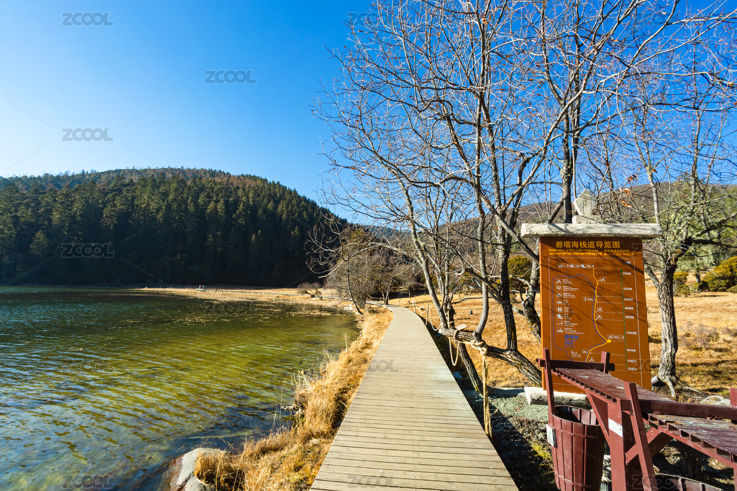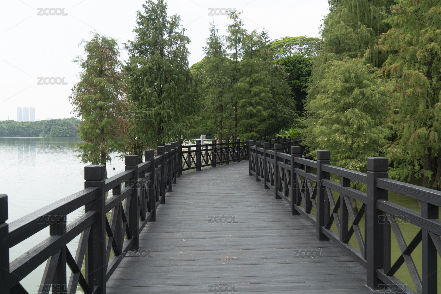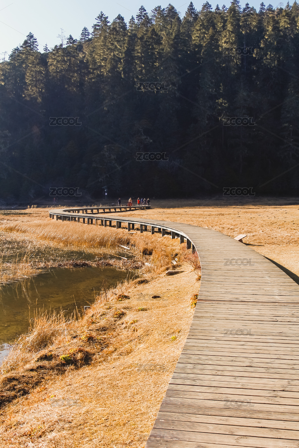 林間湖畔木棧道