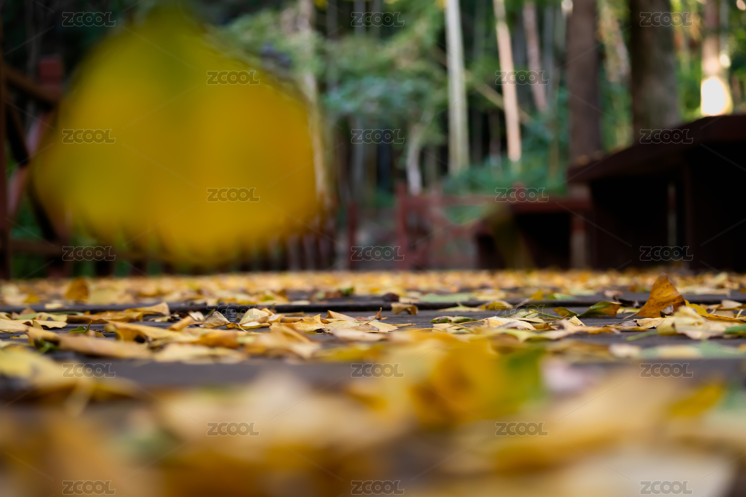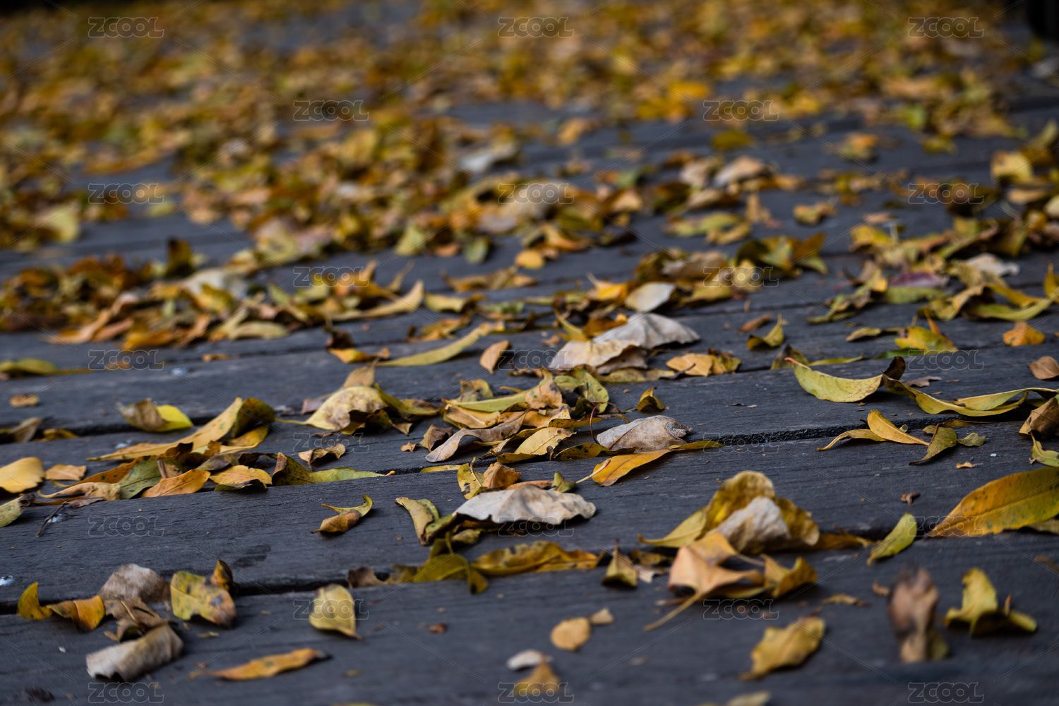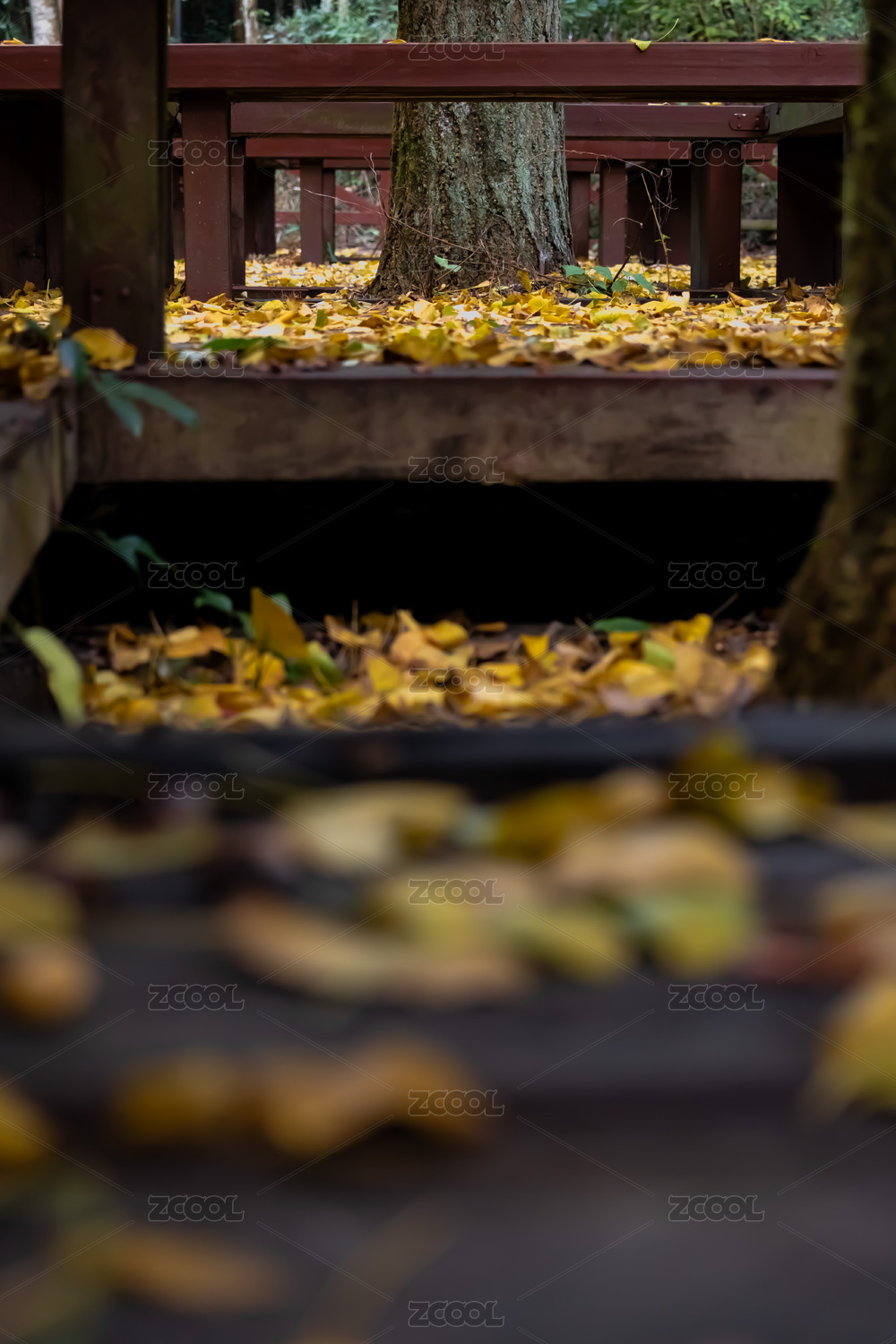 秋日木棧道落葉