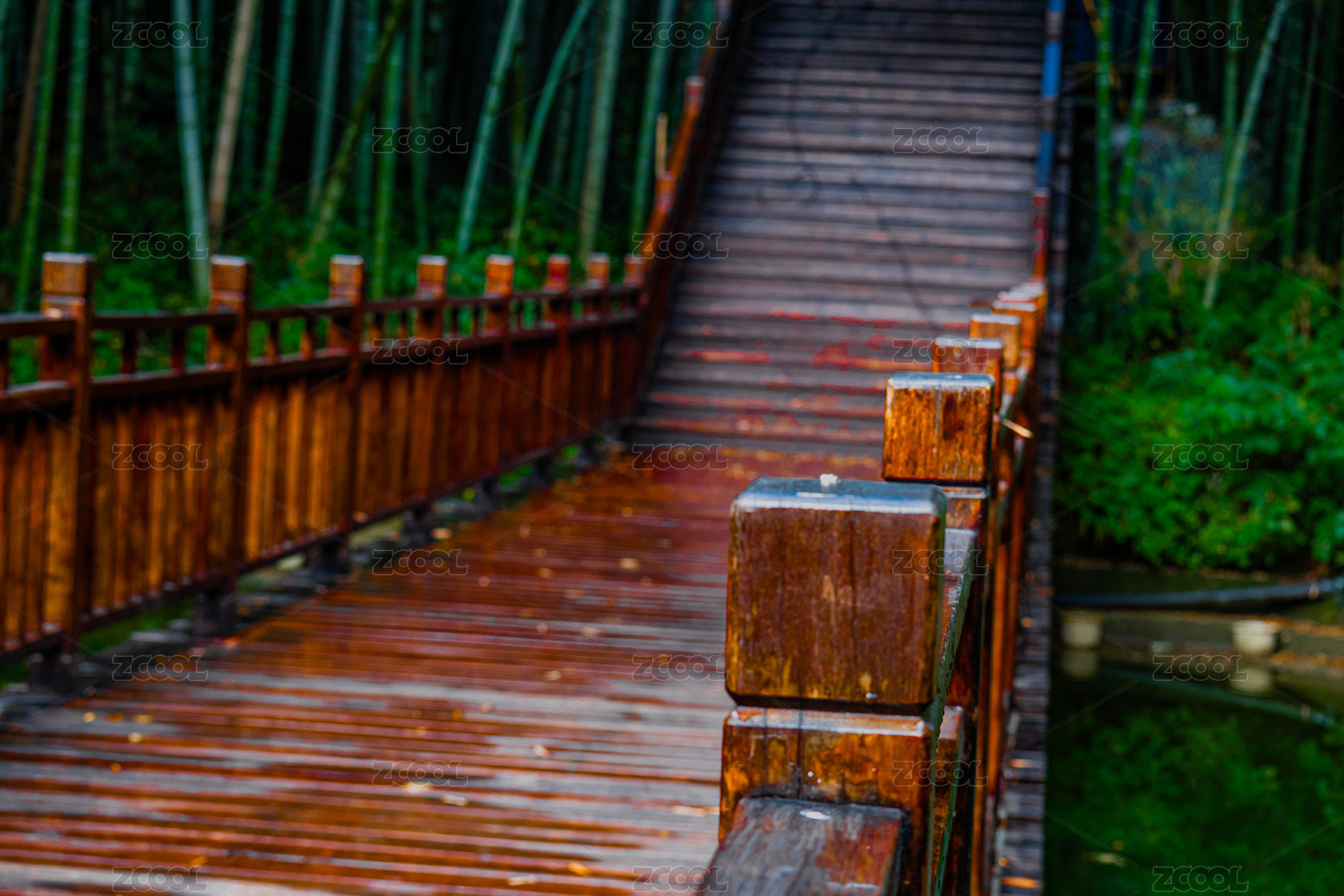 雨后竹林木棧道