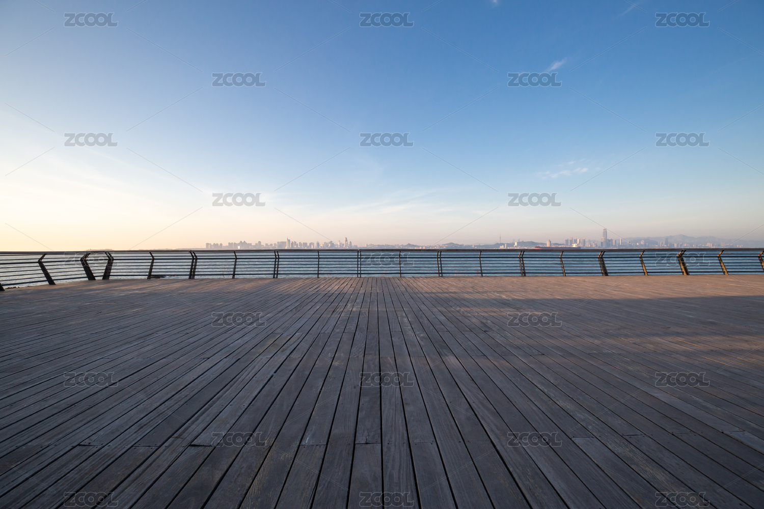 中國山東青島黃昏時海邊的一條木棧道