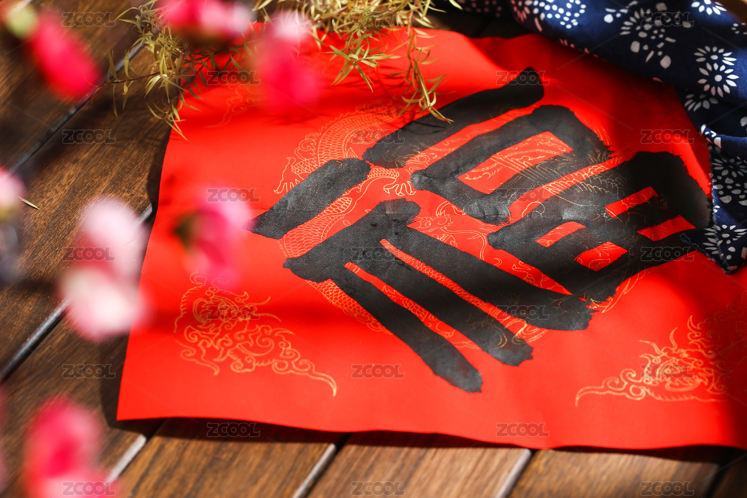 手書紅紙福字