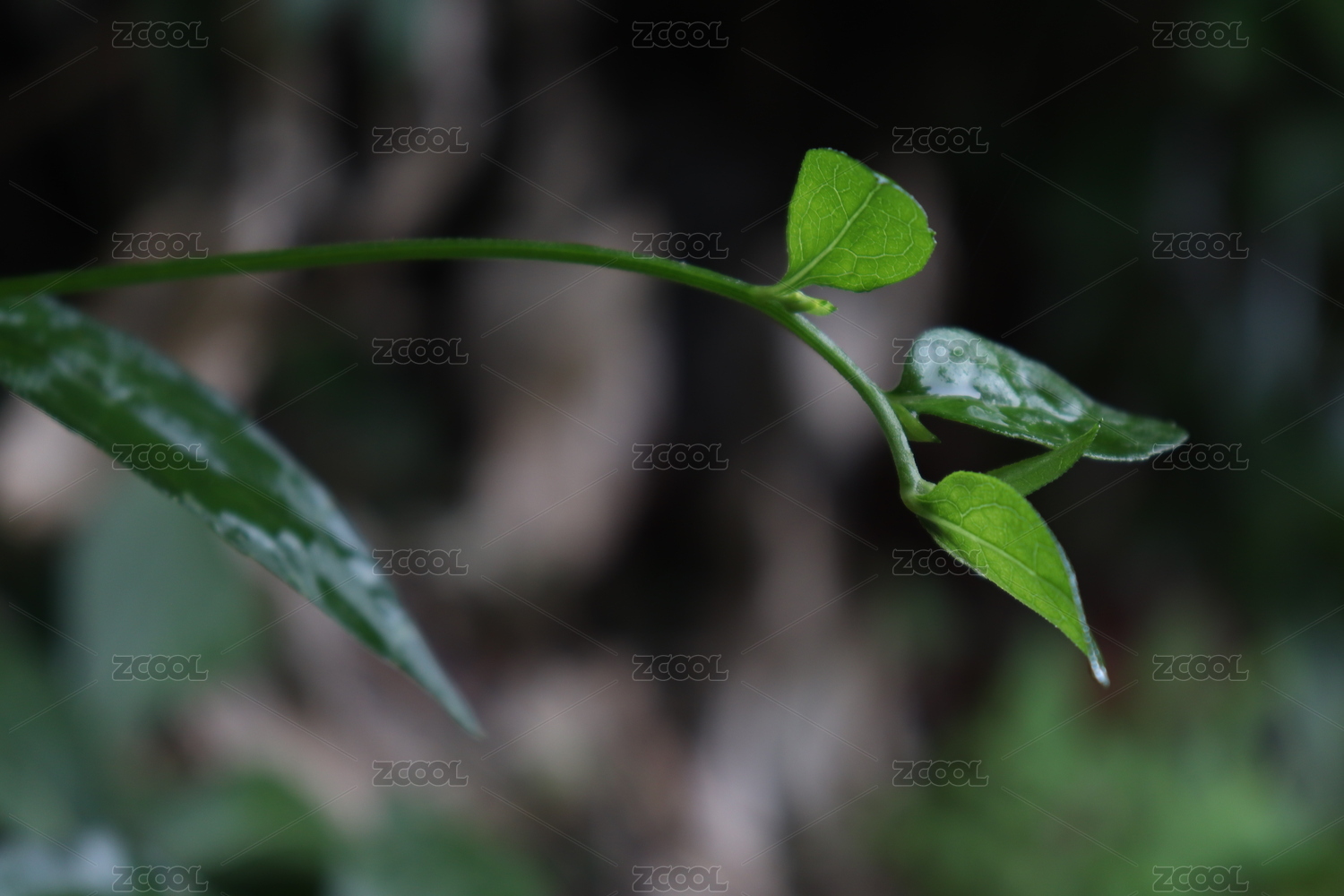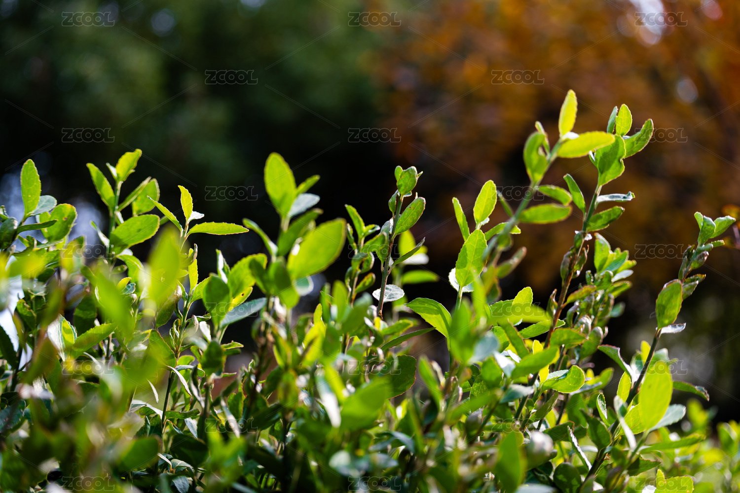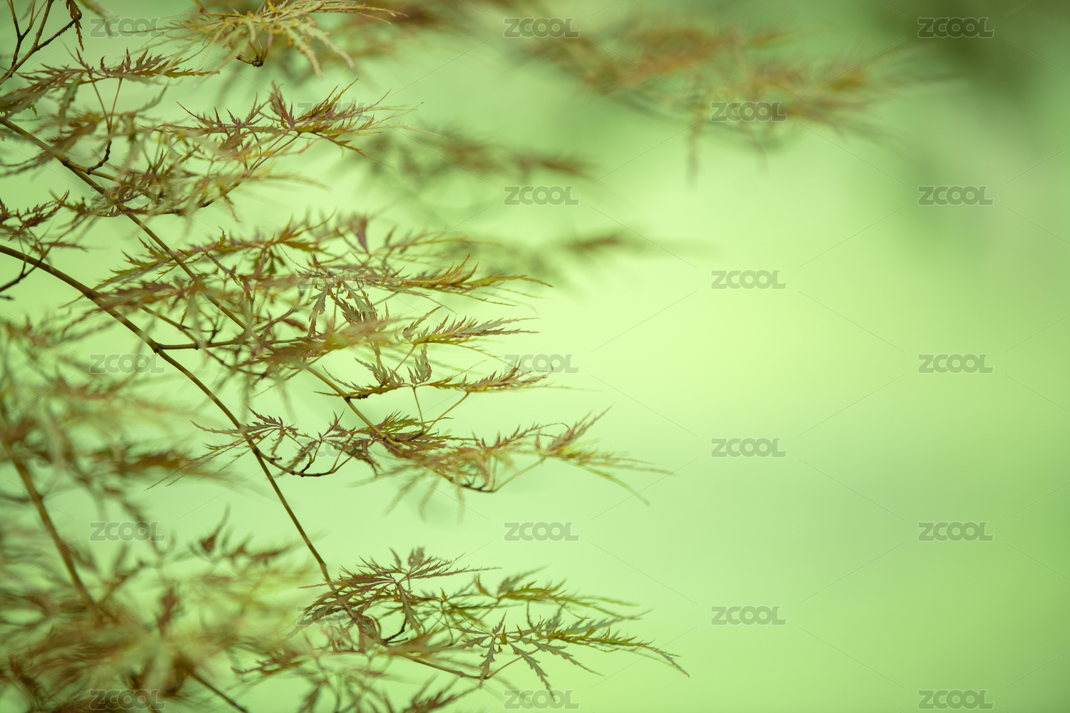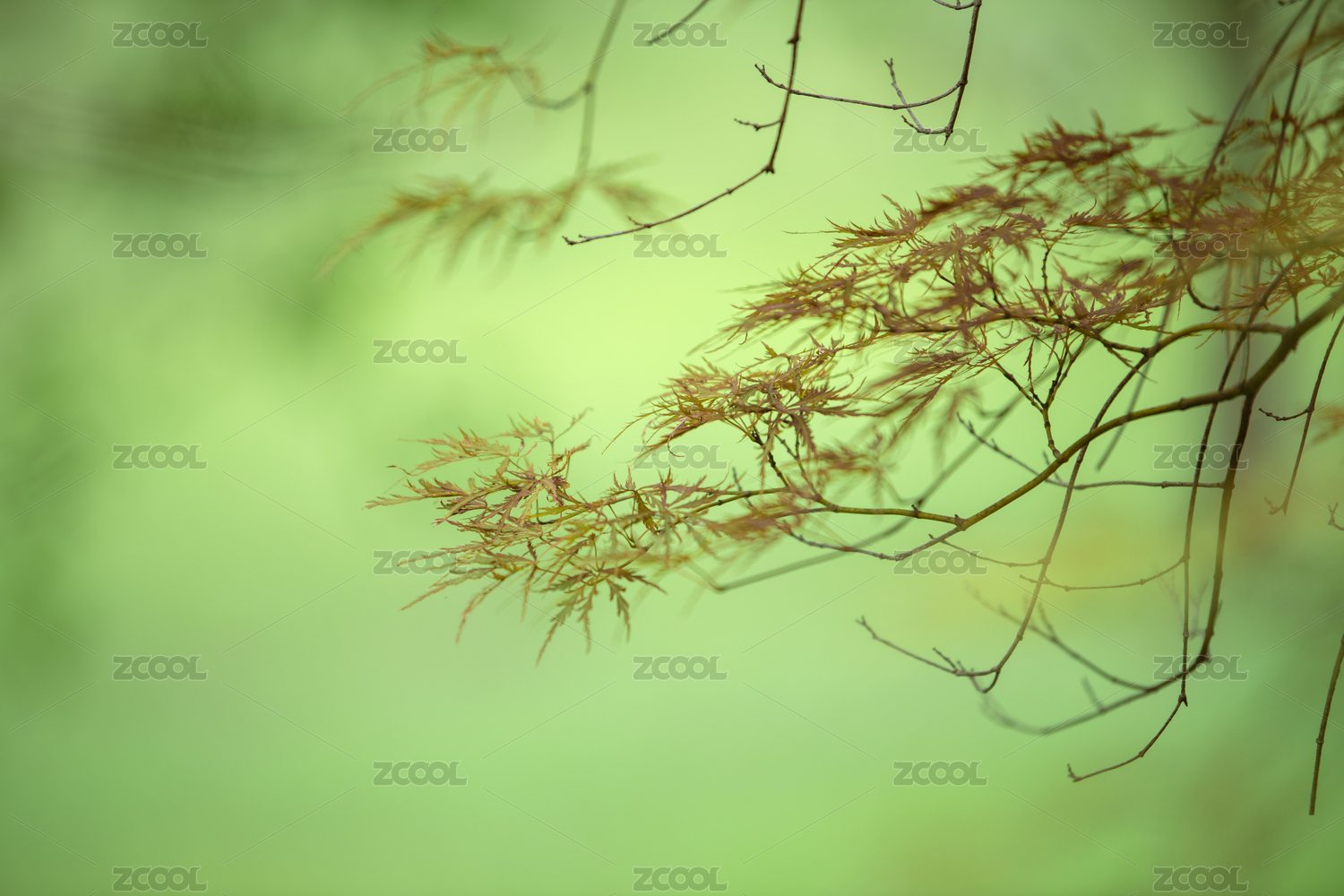 晨光中的新生綠葉逆光下的嫩綠枝芽