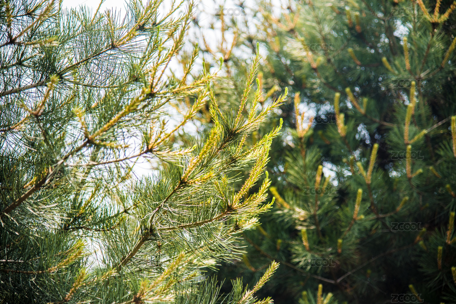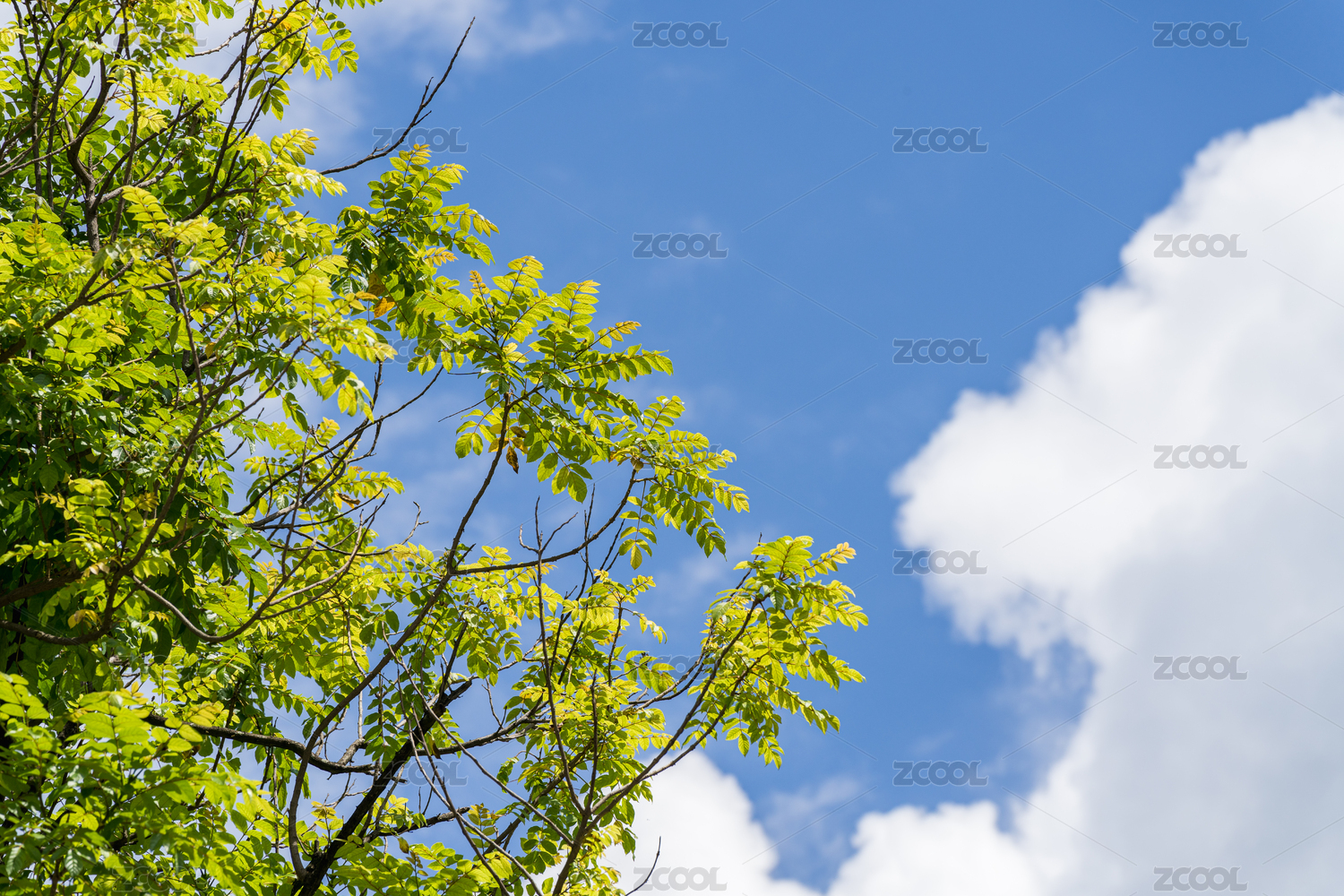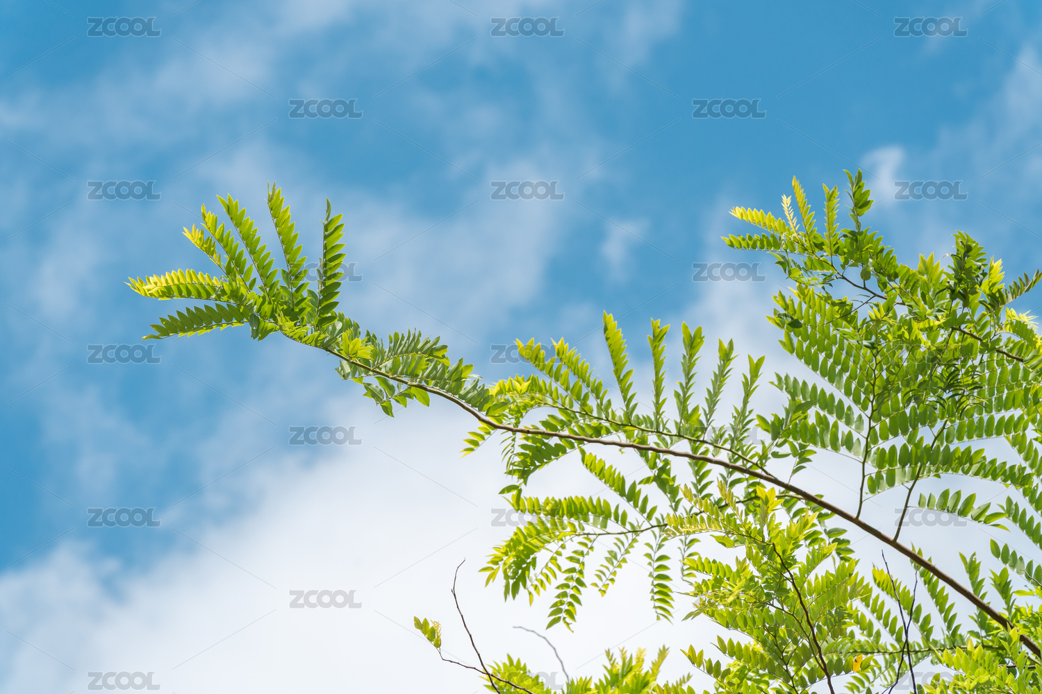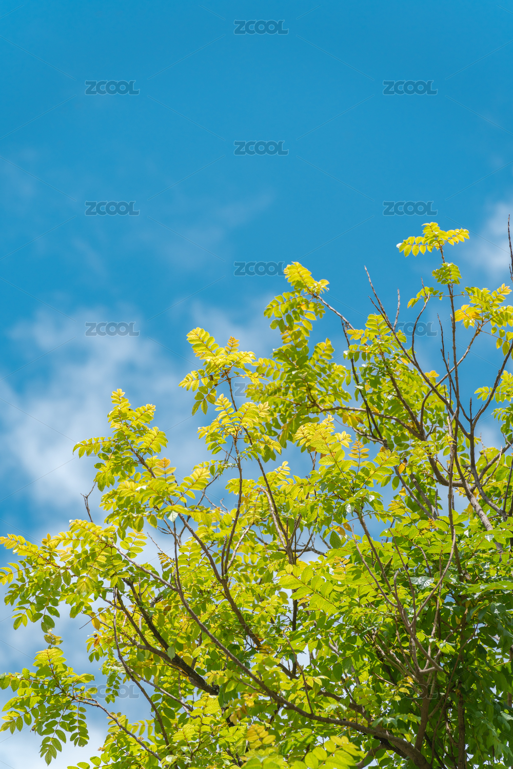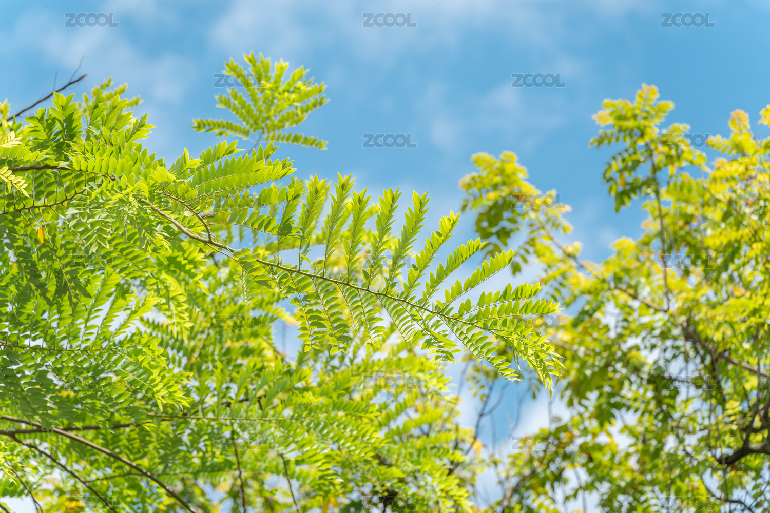 晨光中的新生綠葉逆光下的嫩綠枝芽