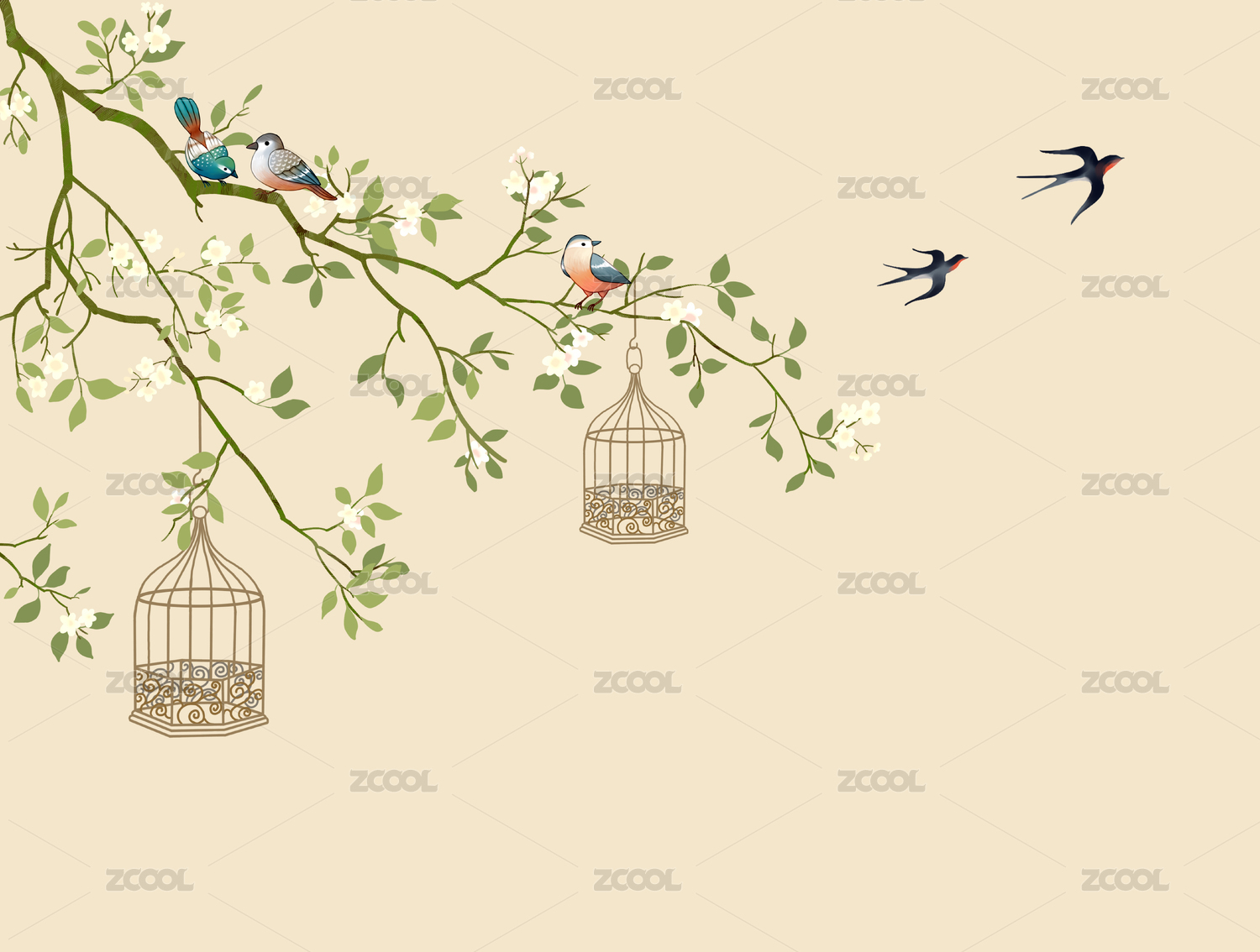 春天綠枝發(fā)新芽中國風(fēng)花鳥工筆背景