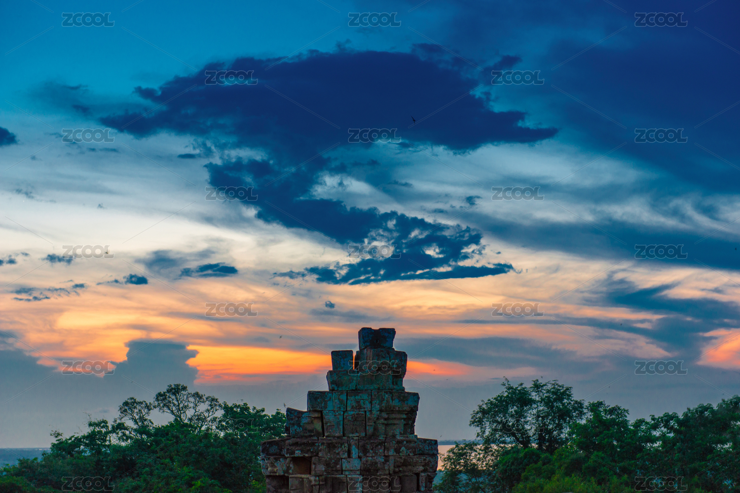 柬埔寨暹粒市吳哥窟巴肯山日落