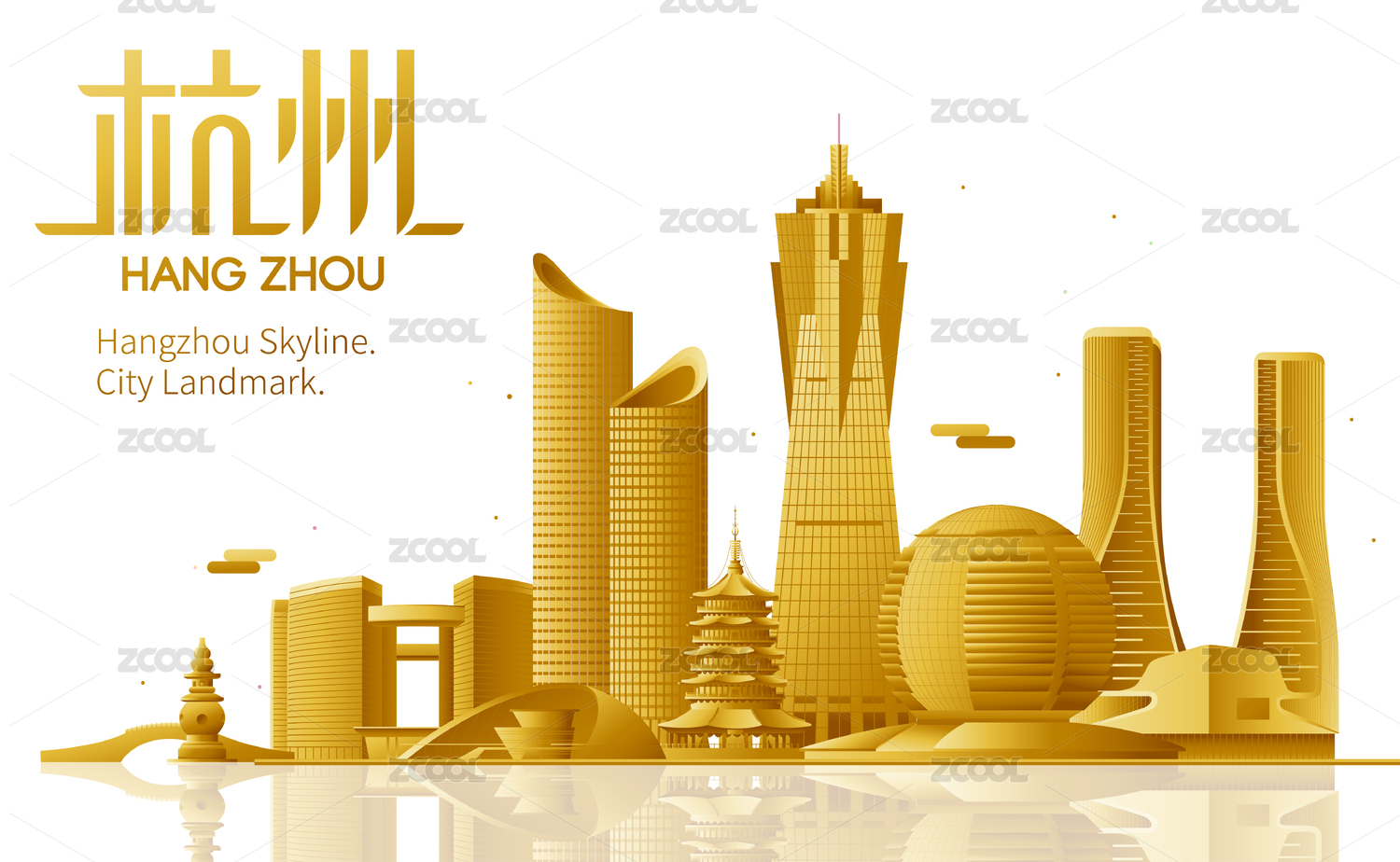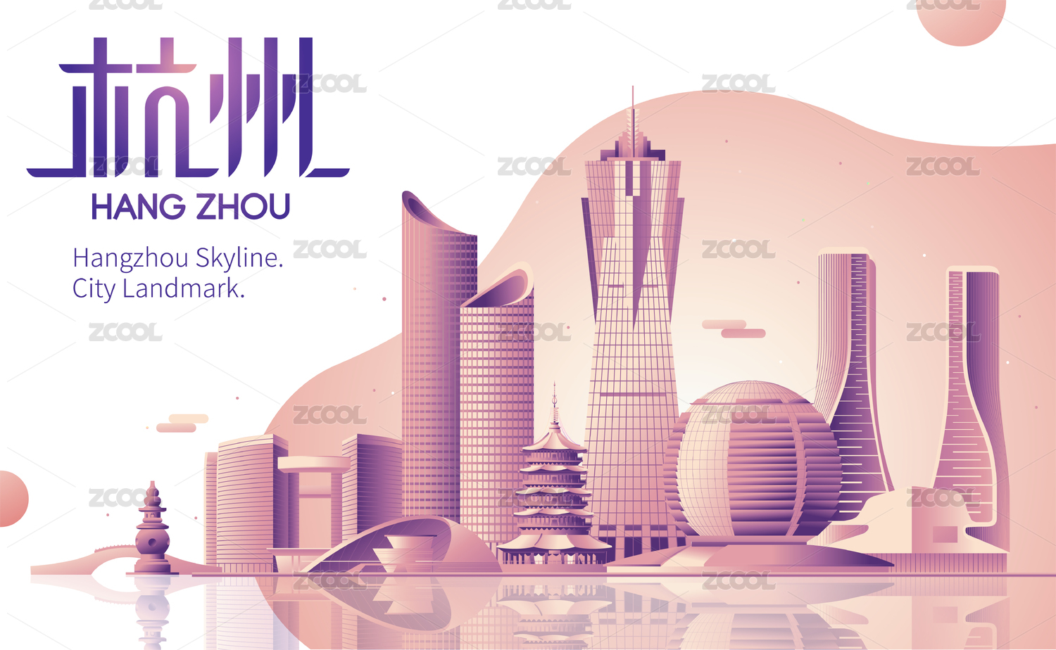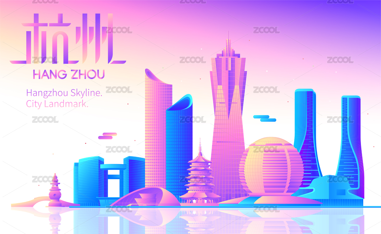 中國浙江杭州市商務城市彩色天際線矢量插畫