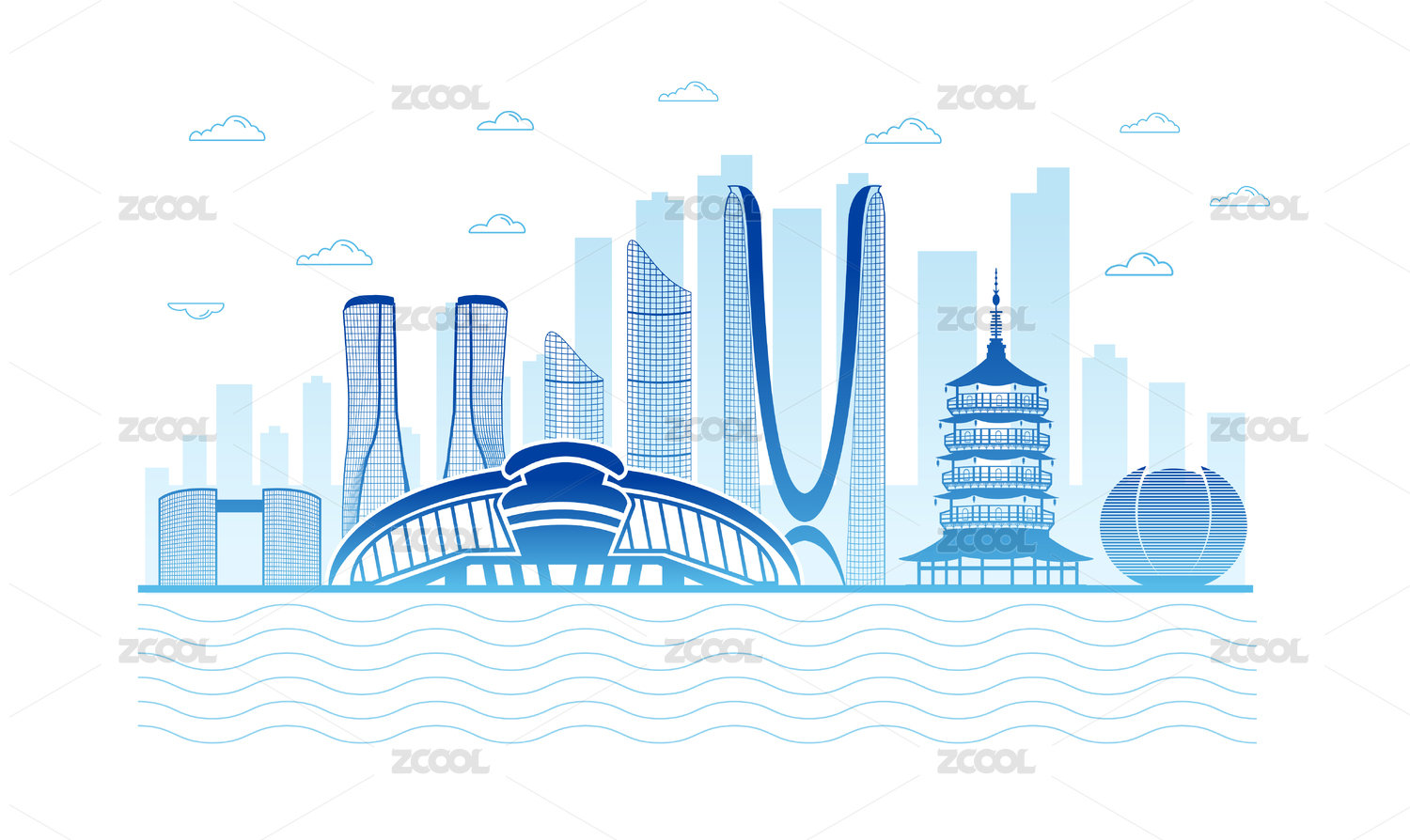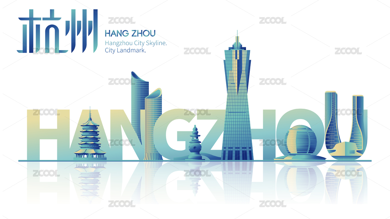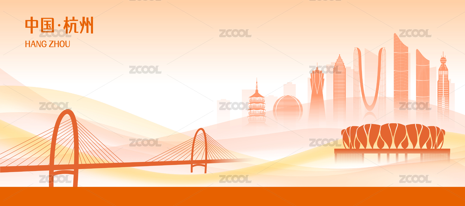 中國浙江杭州市商務城市彩色天際線矢量插畫