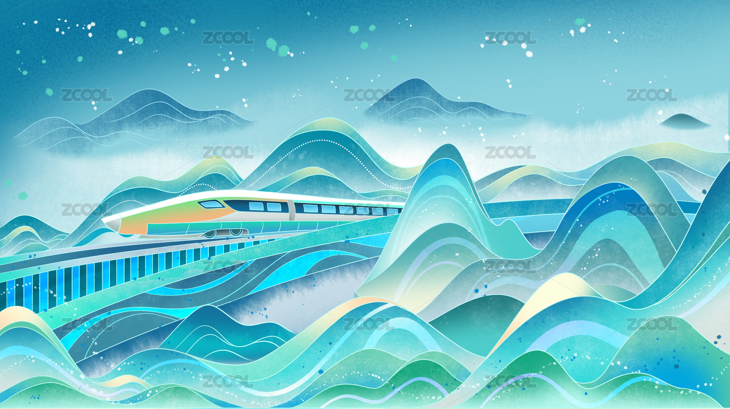 杭州西湖十景國潮矢量風景插畫斷橋殘雪