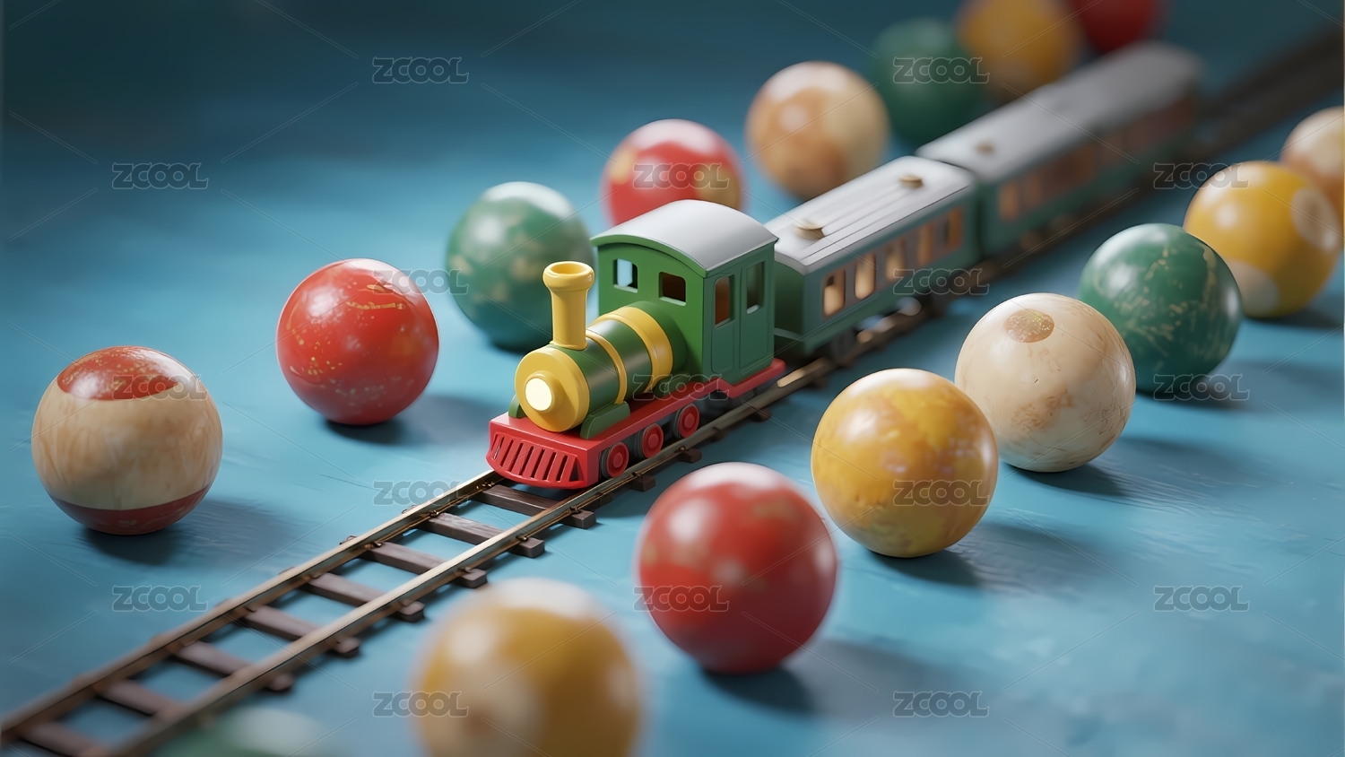玩具火車與彩色木球