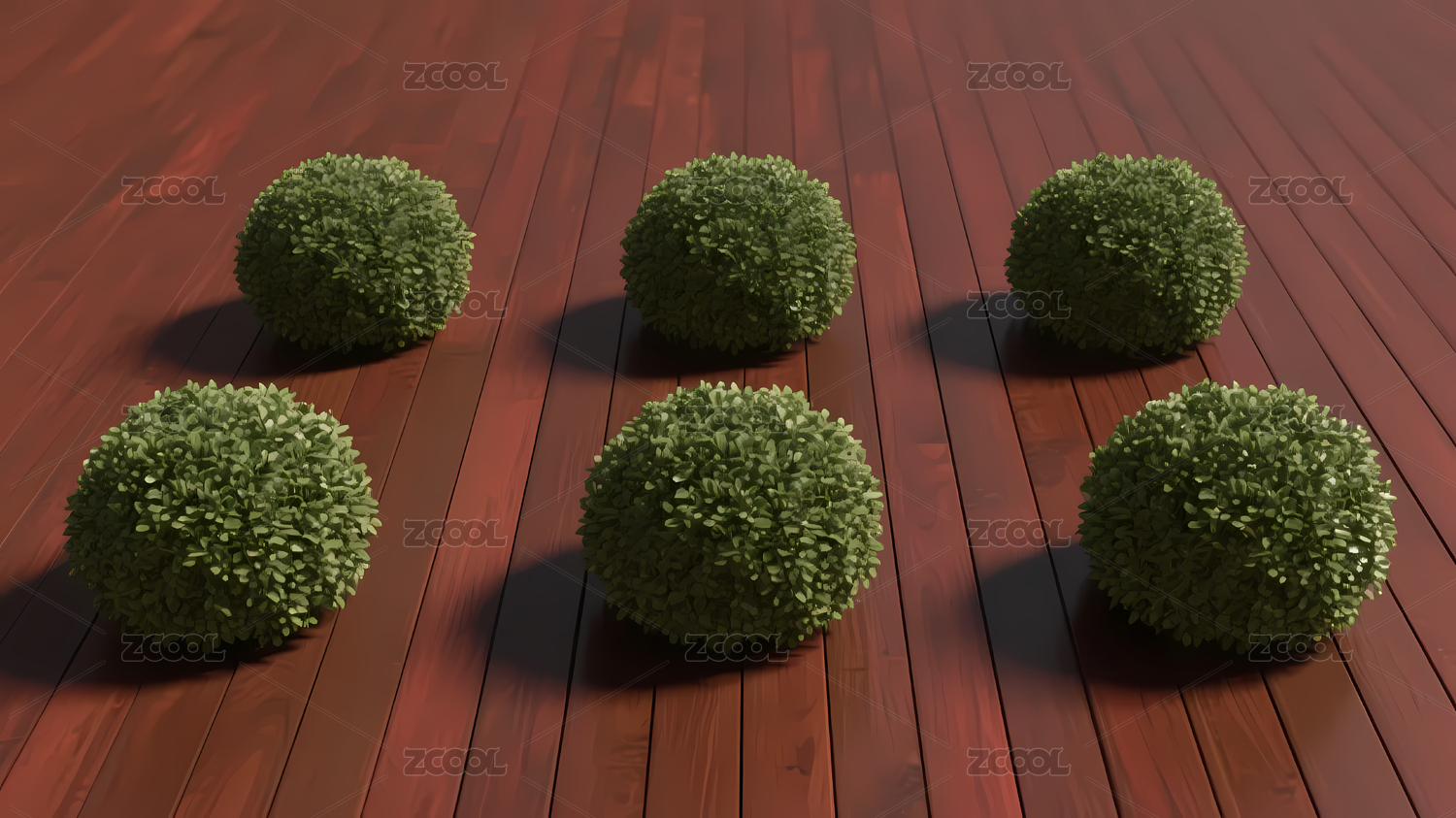 六顆綠灌木球排列