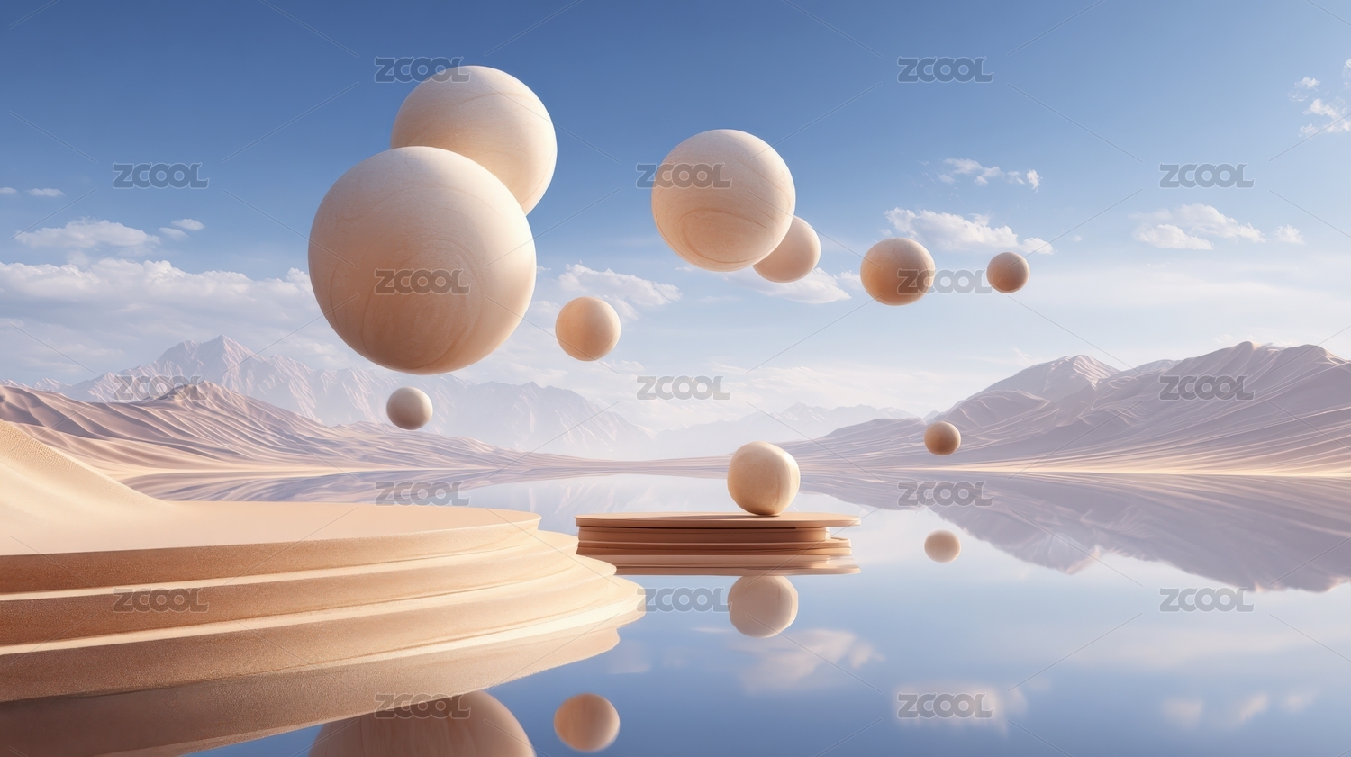 柔光木球漂浮于沙丘之上