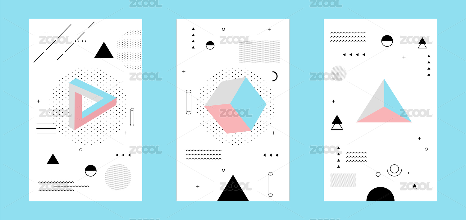 孟菲斯風(fēng)格的封面,海報(bào)抽象形狀的組成。3D漸變矢量幾何模板