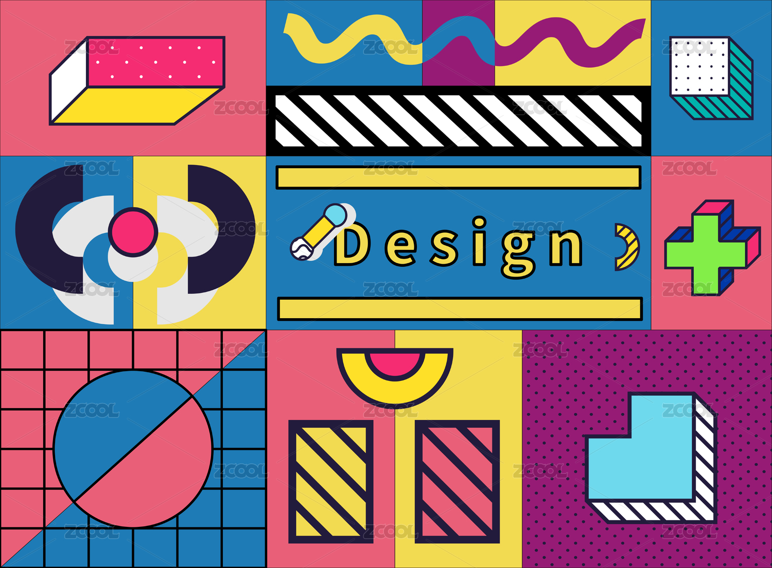 孟菲斯風(fēng)格抽象的幾何形組成的矢量平面構(gòu)成