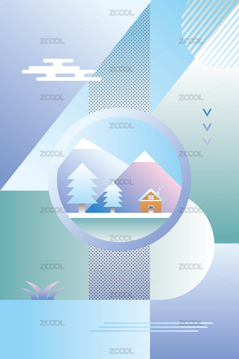 孟菲斯風(fēng)格24節(jié)氣插圖-冬季大寒