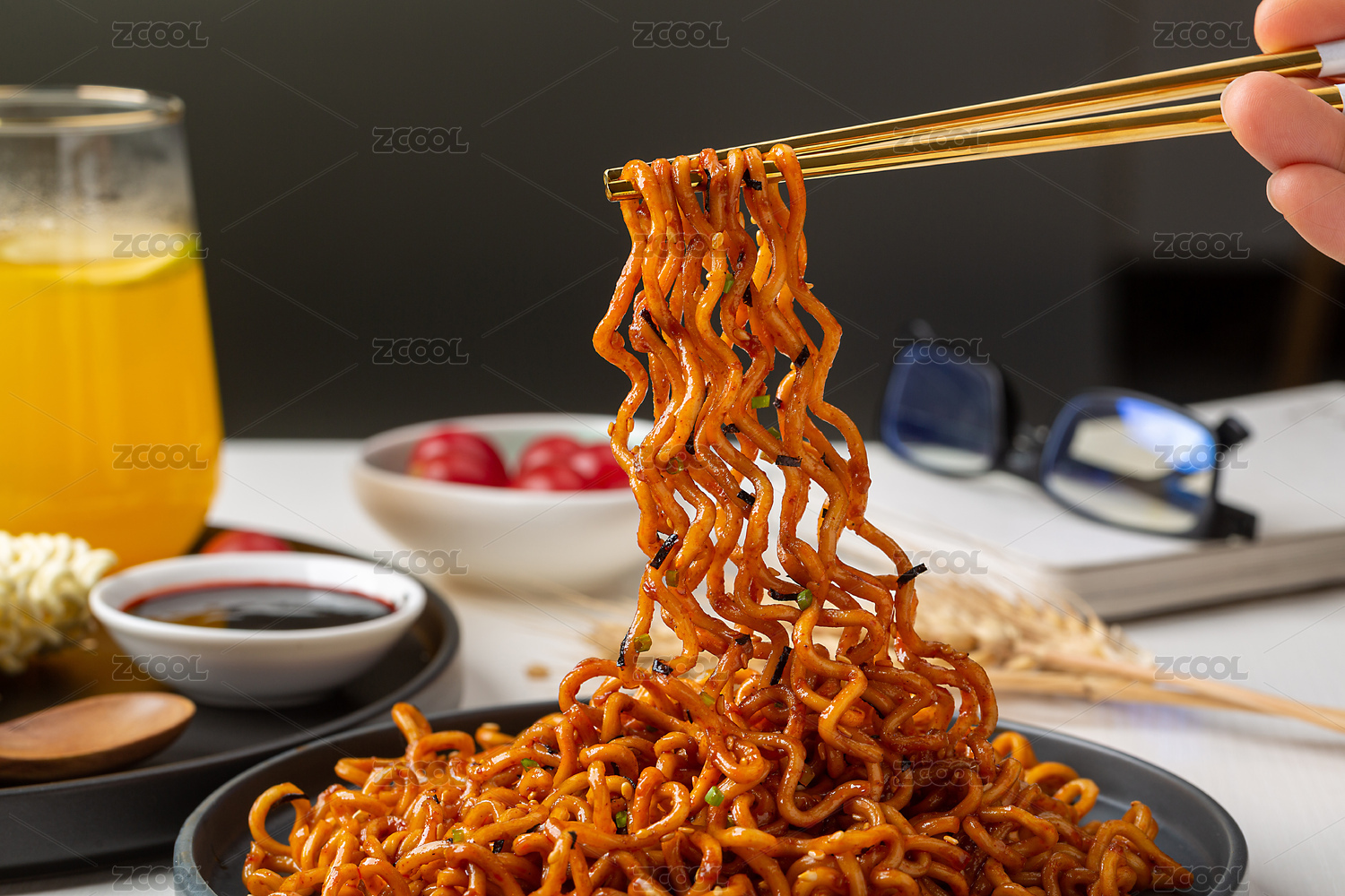 筷子挑起金黃油亮的火雞面