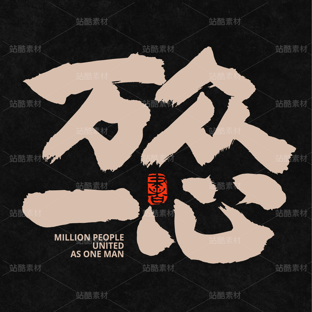 中國風書法漢字字體設計萬眾一心