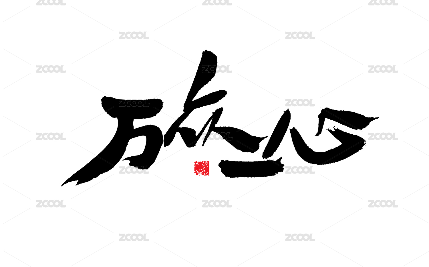 萬眾一心,中國風手寫書法字體