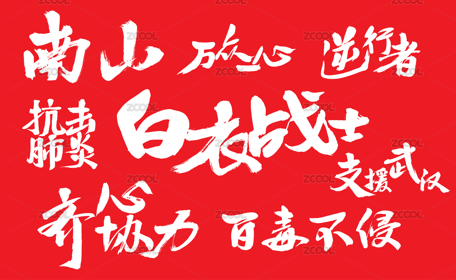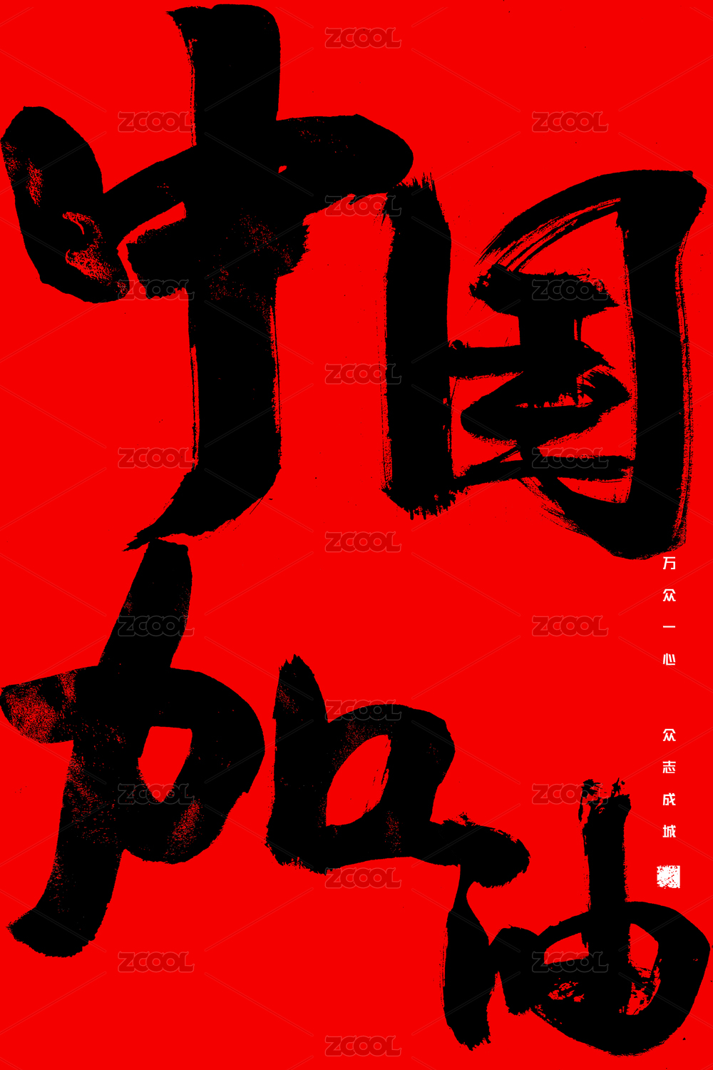眾志成城 萬眾一心中國漢字手寫毛筆字體
