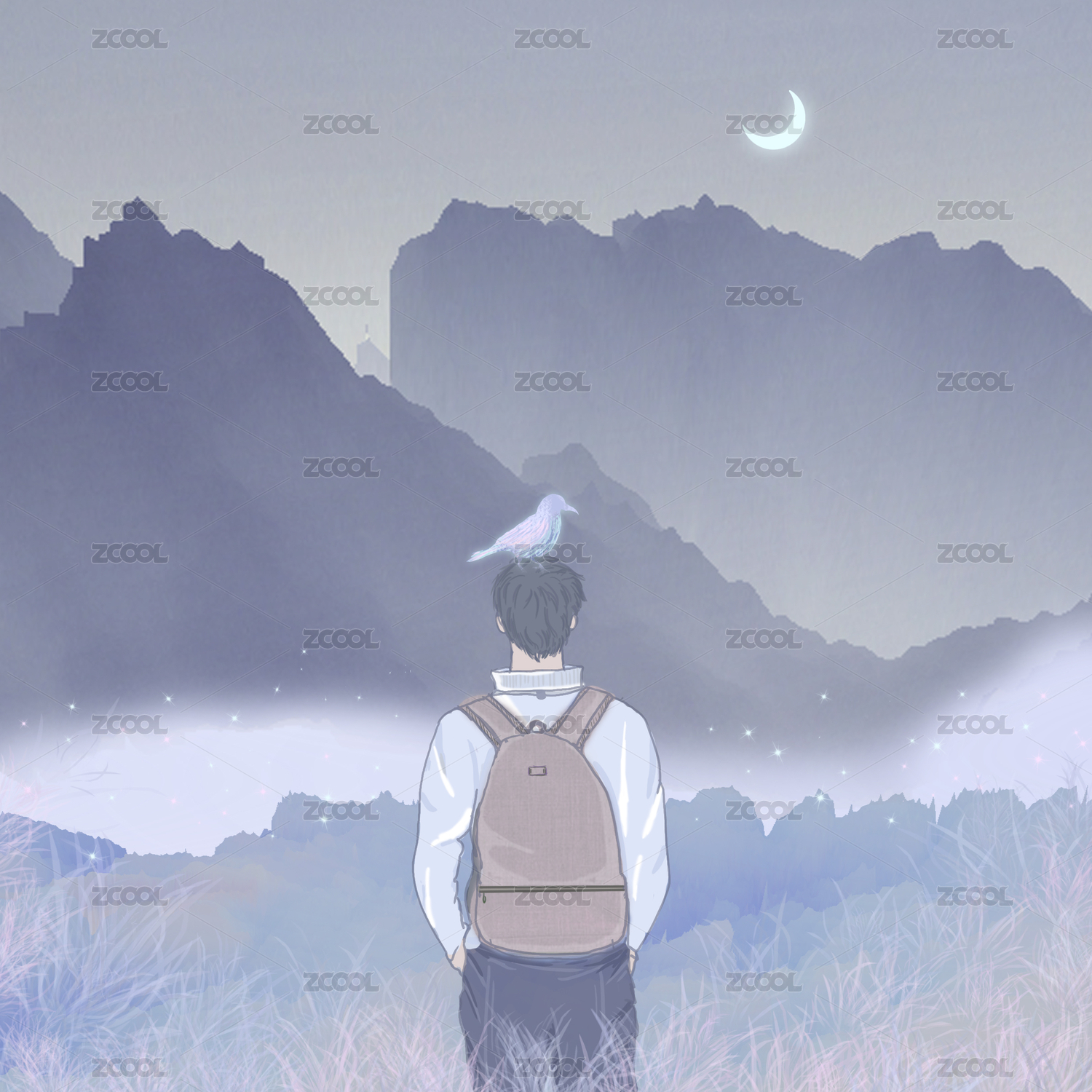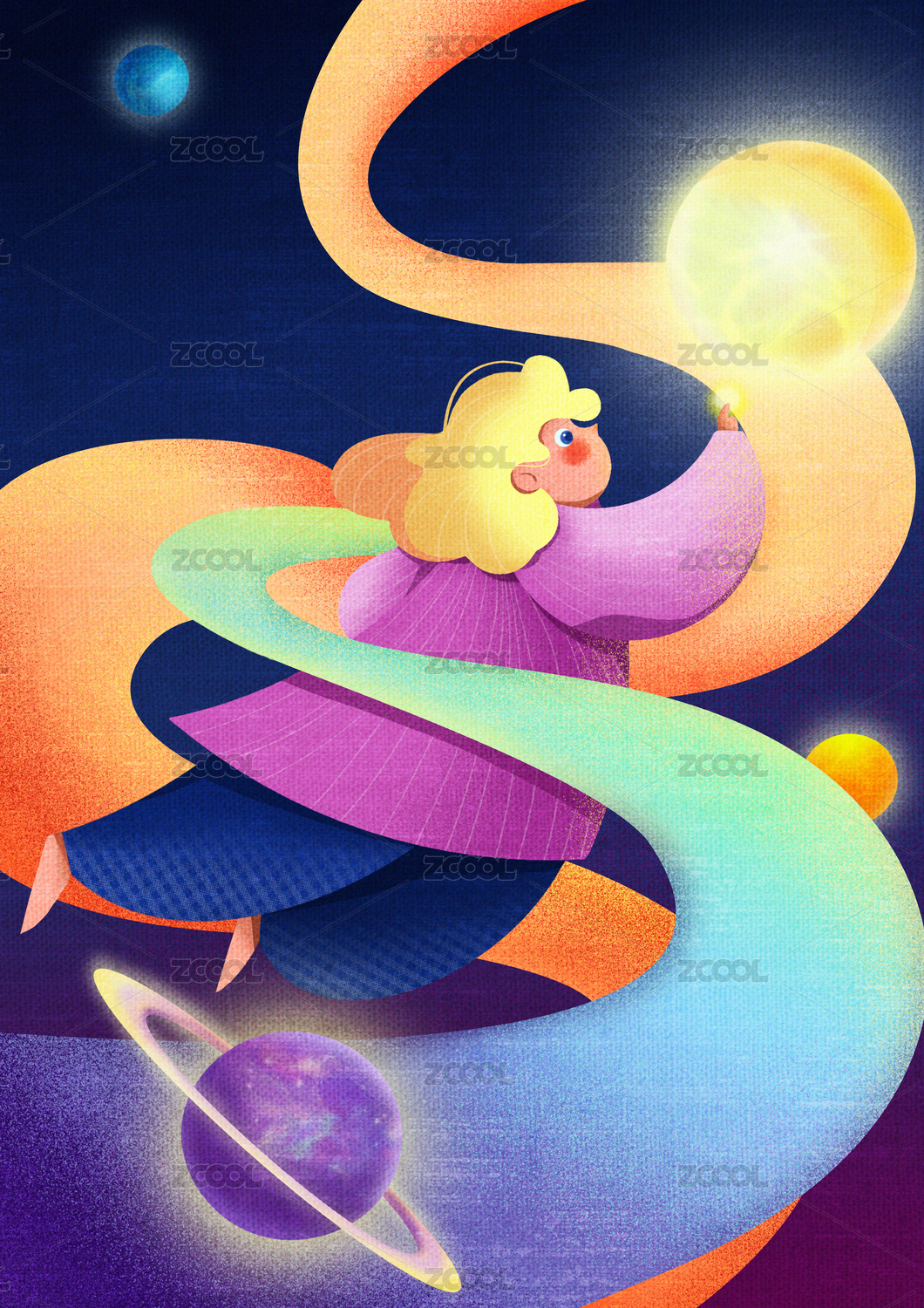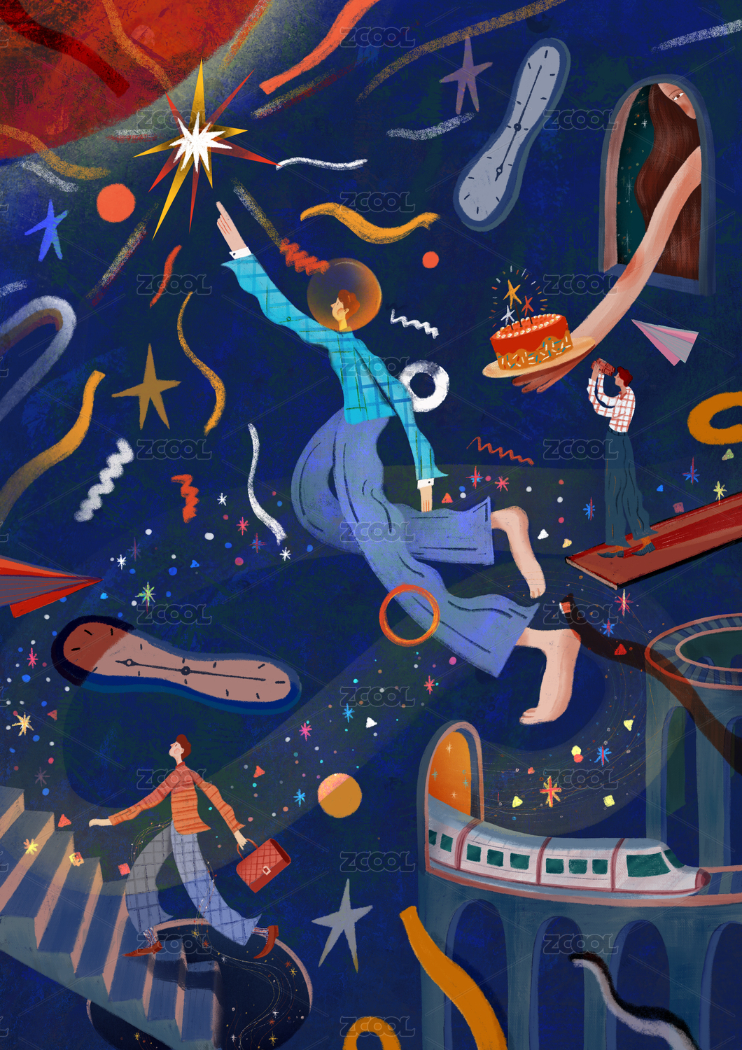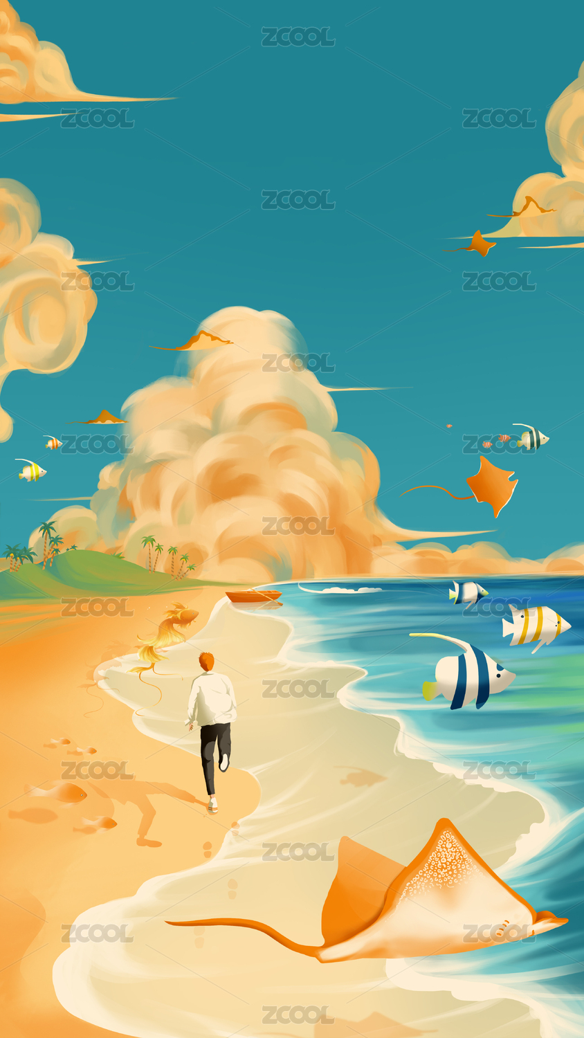 向遠方奔跑的追夢少年創(chuàng)意插畫