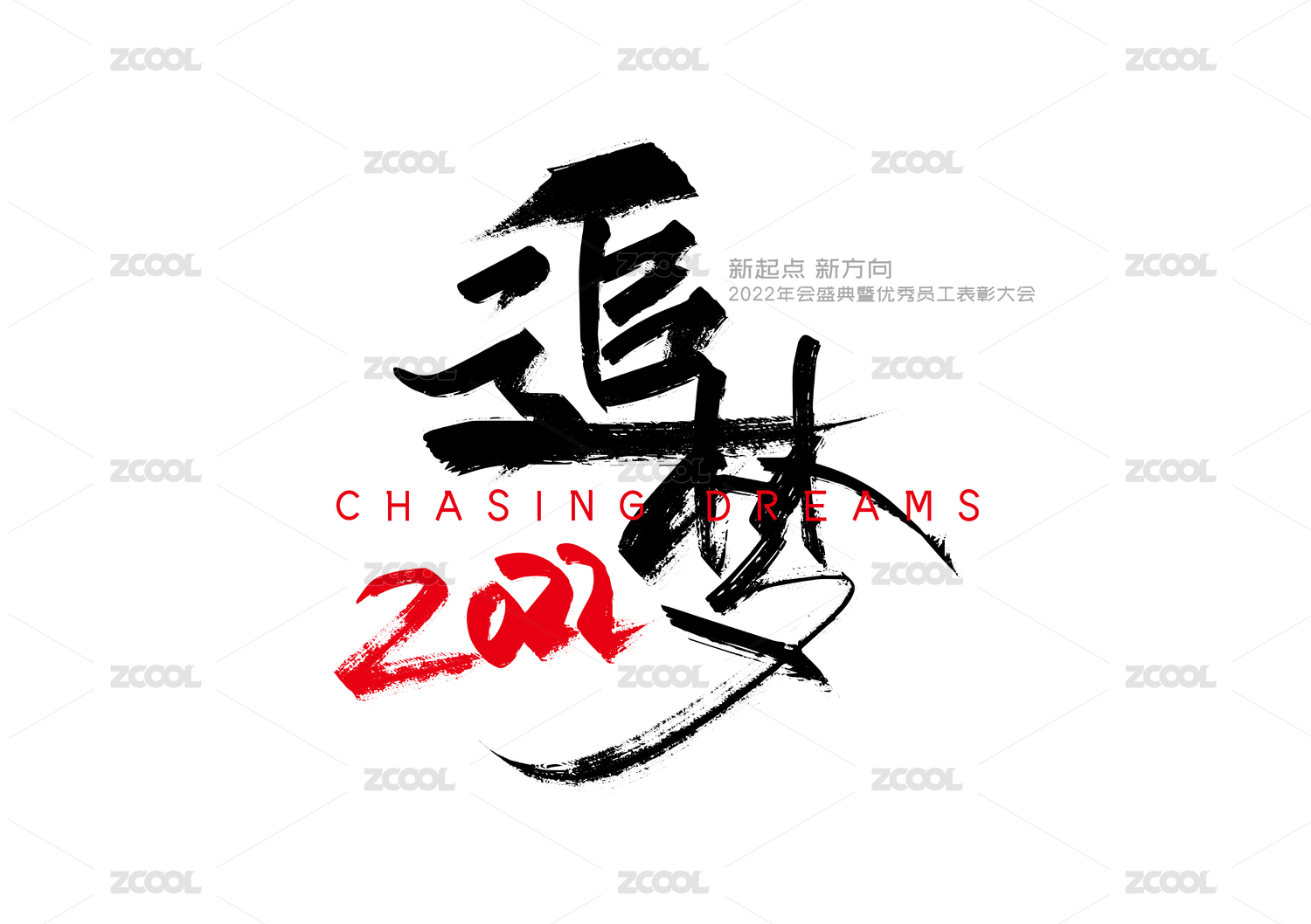 手寫企業(yè)年會標題字追夢2022