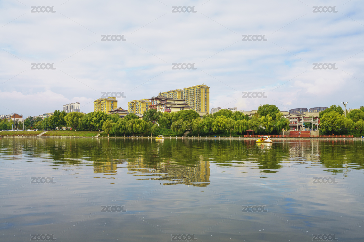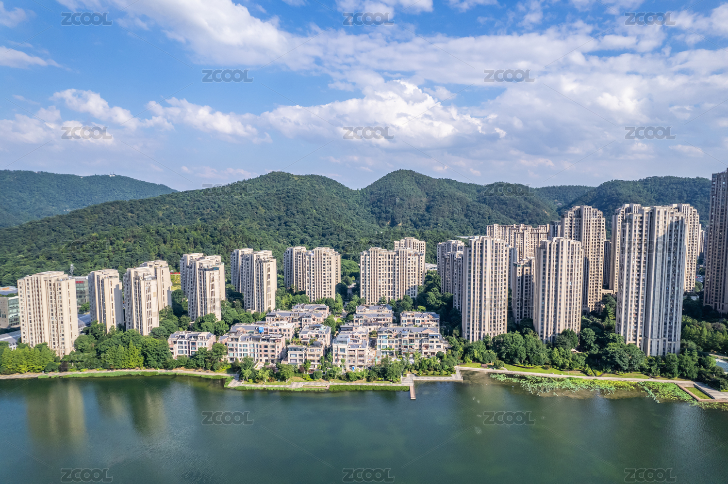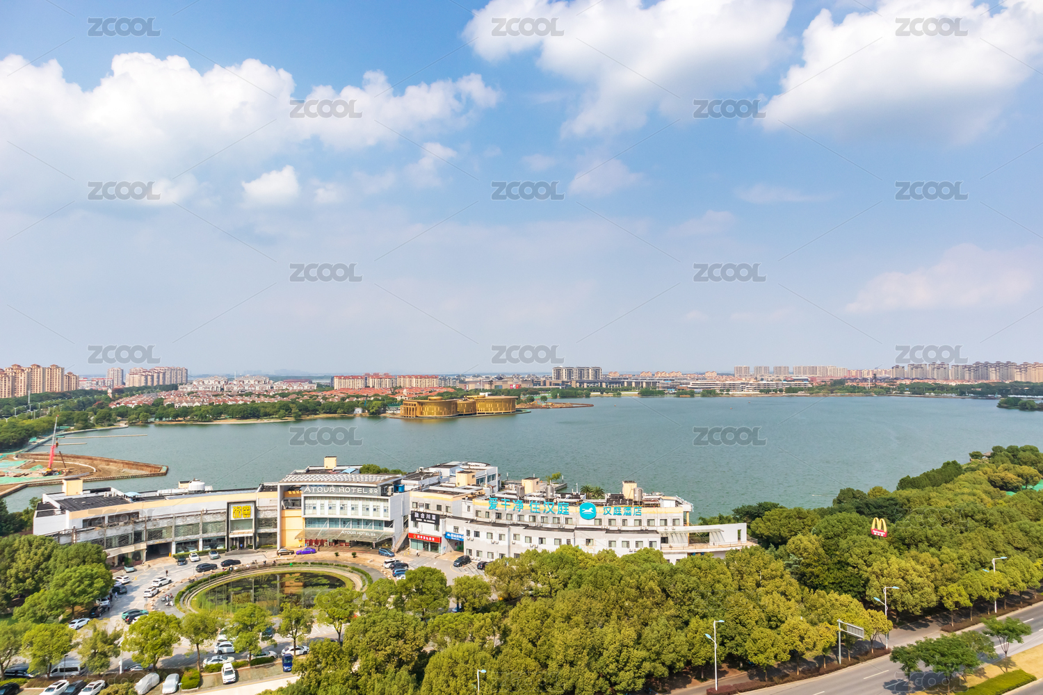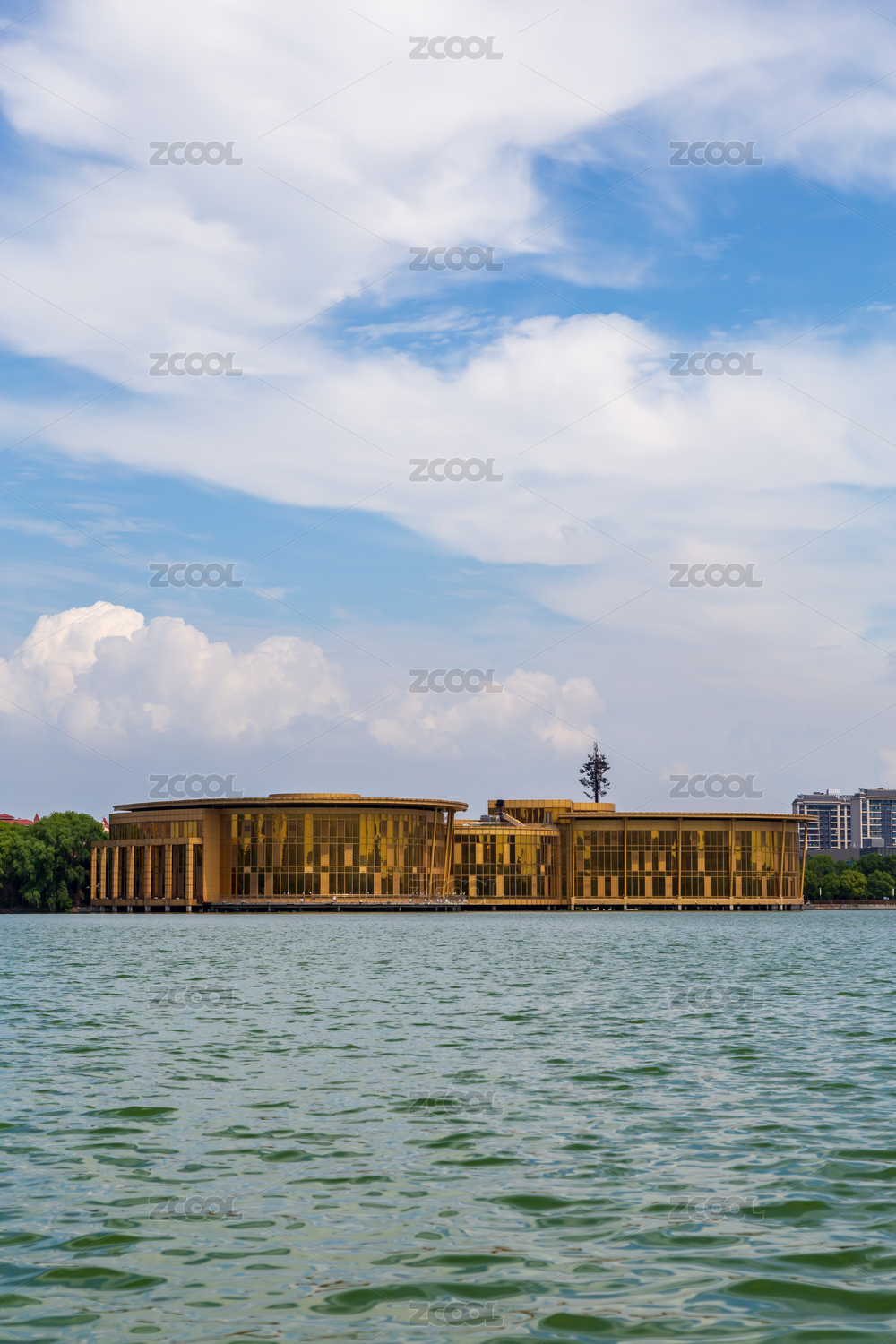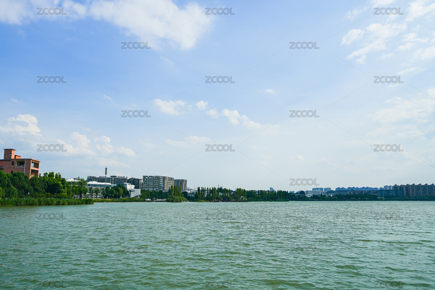 紹興迪蕩湖公園湖景與對(duì)岸的高檔住宅區(qū)