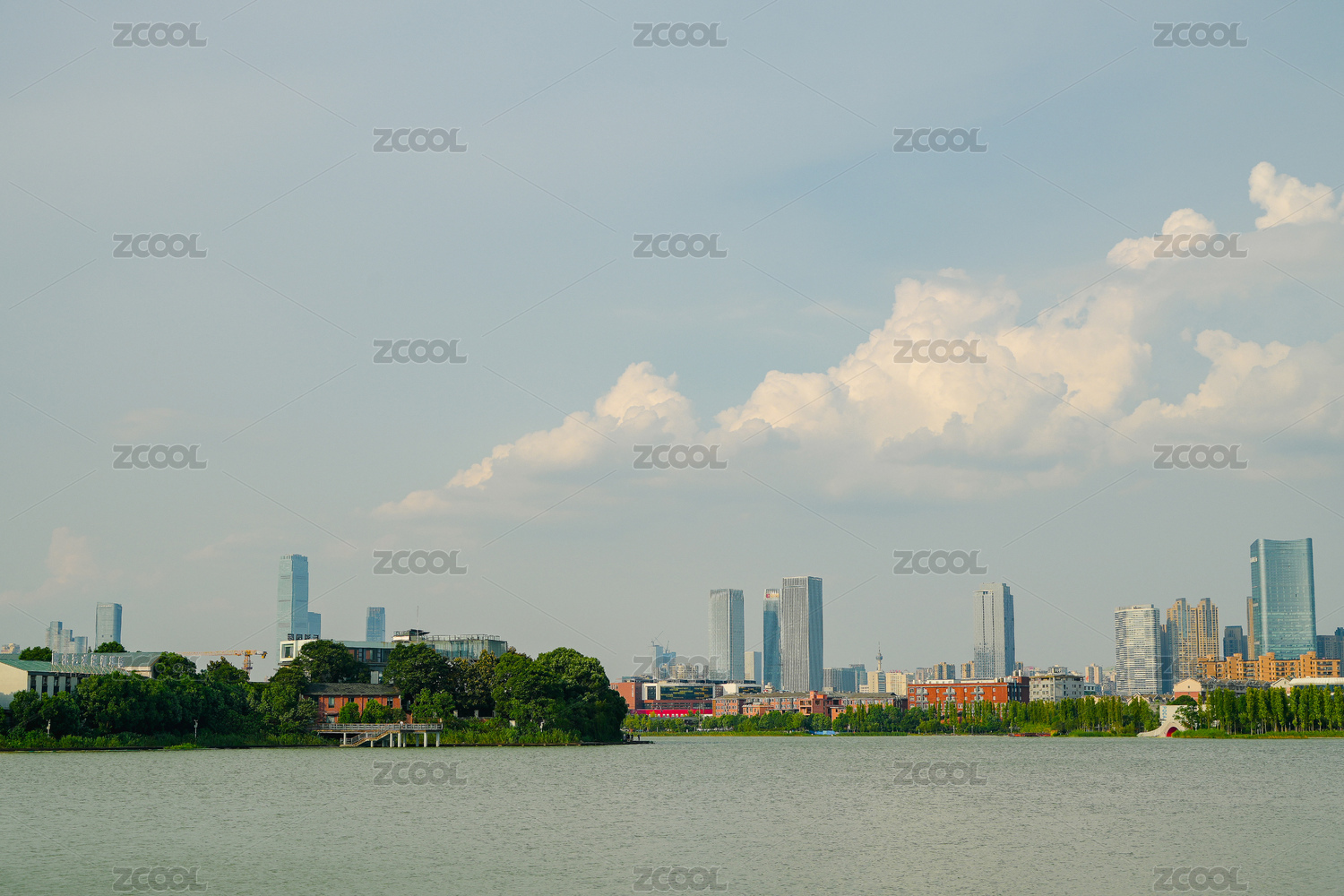 福州西湖公園湖景與城市建筑風(fēng)光