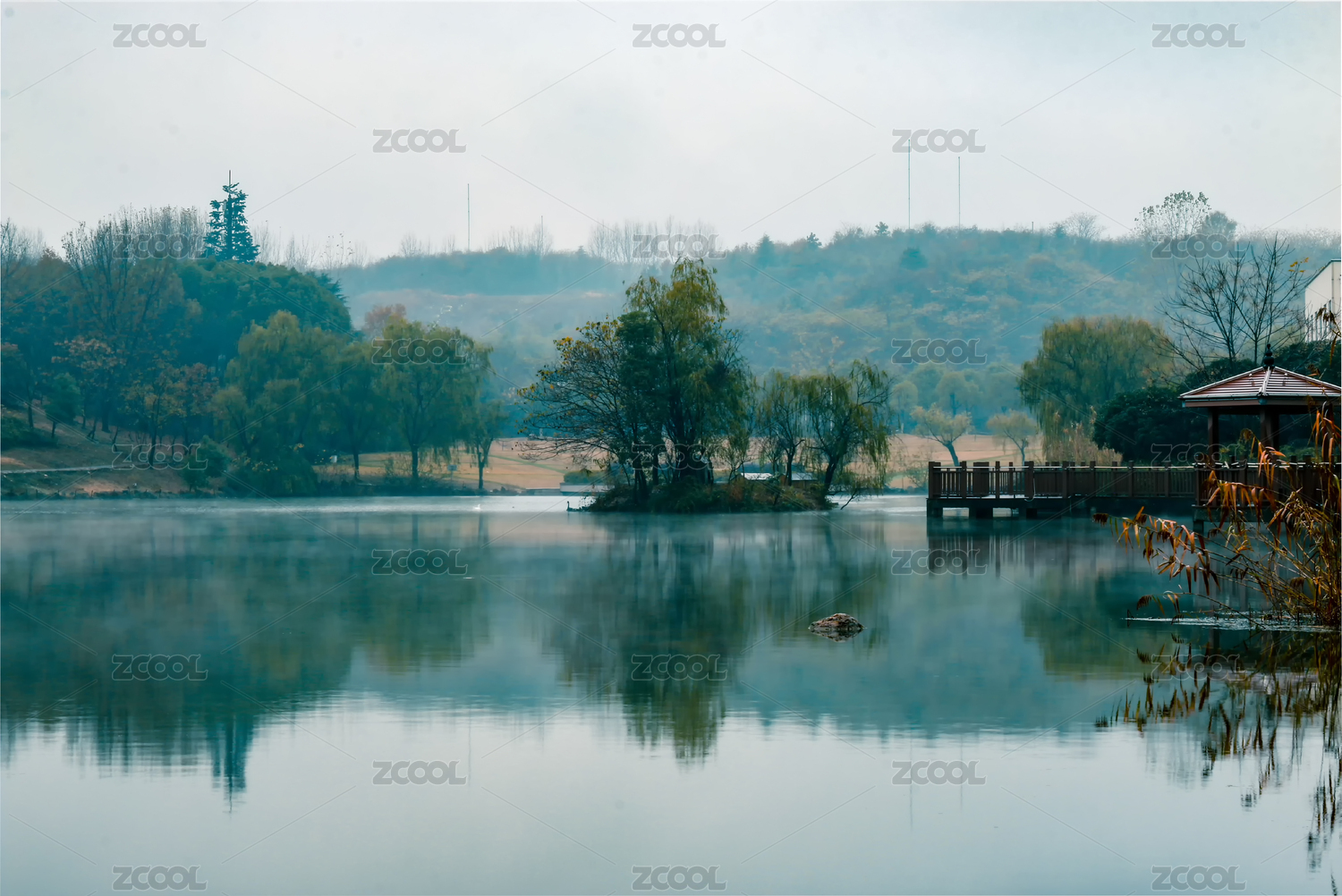 細(xì)雨中的小湖景色