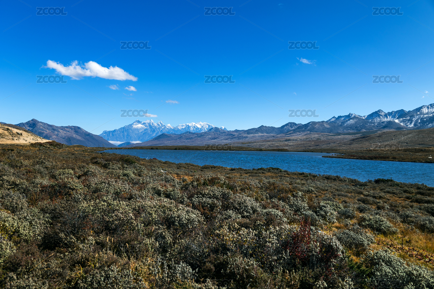 中國四川省甘孜康定紅海子湖景雪山風(fēng)光