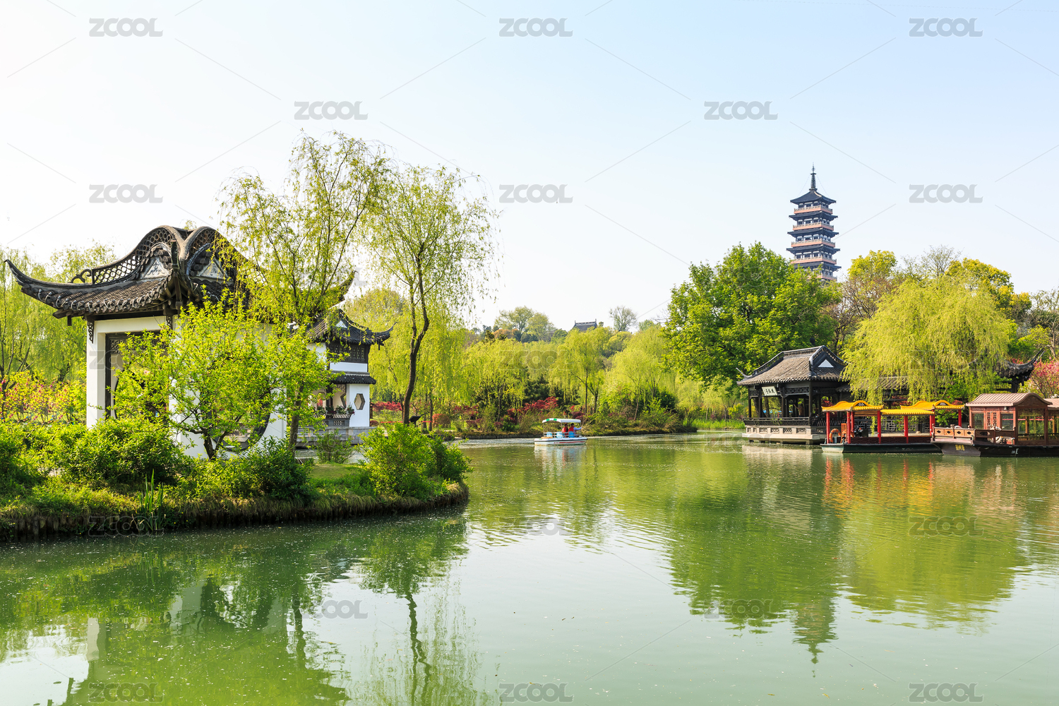 中國江蘇省揚(yáng)州瘦西湖湖景園林風(fēng)光