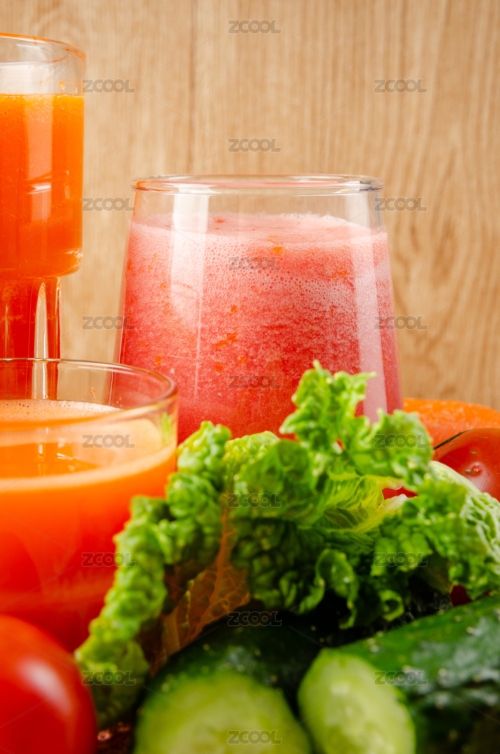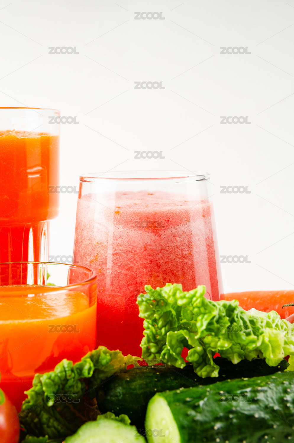 一杯紅色的番茄汁和其他蔬菜汁蔬菜放在一起