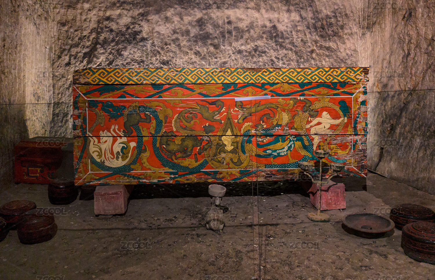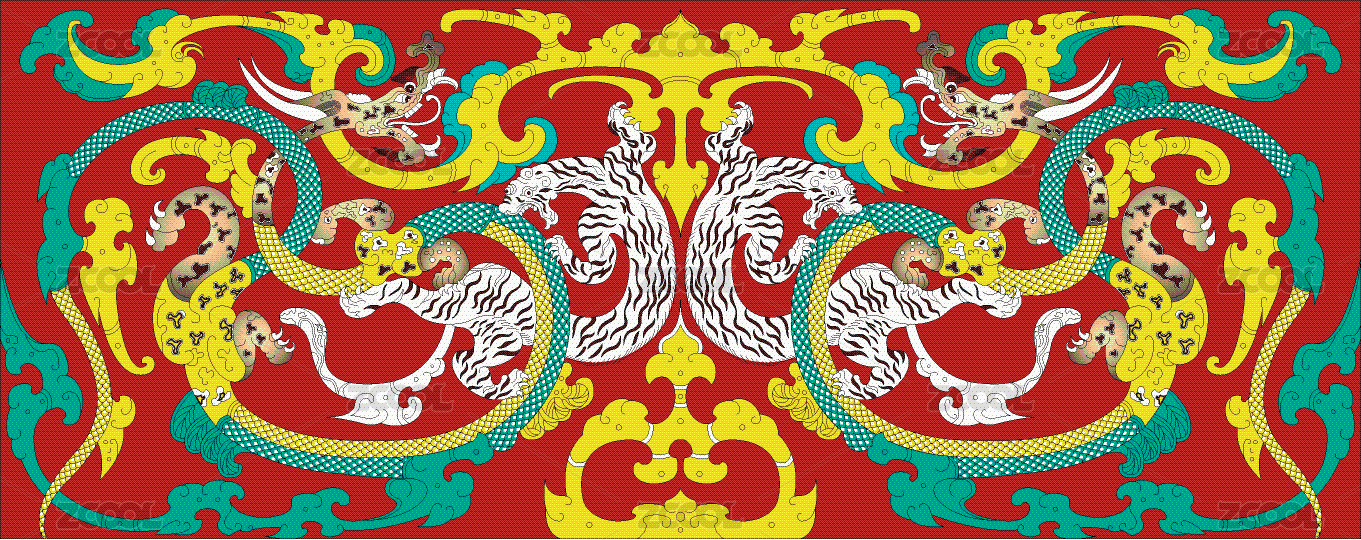 西漢馬王堆漢墓朱地彩繪棺上的龍虎紋