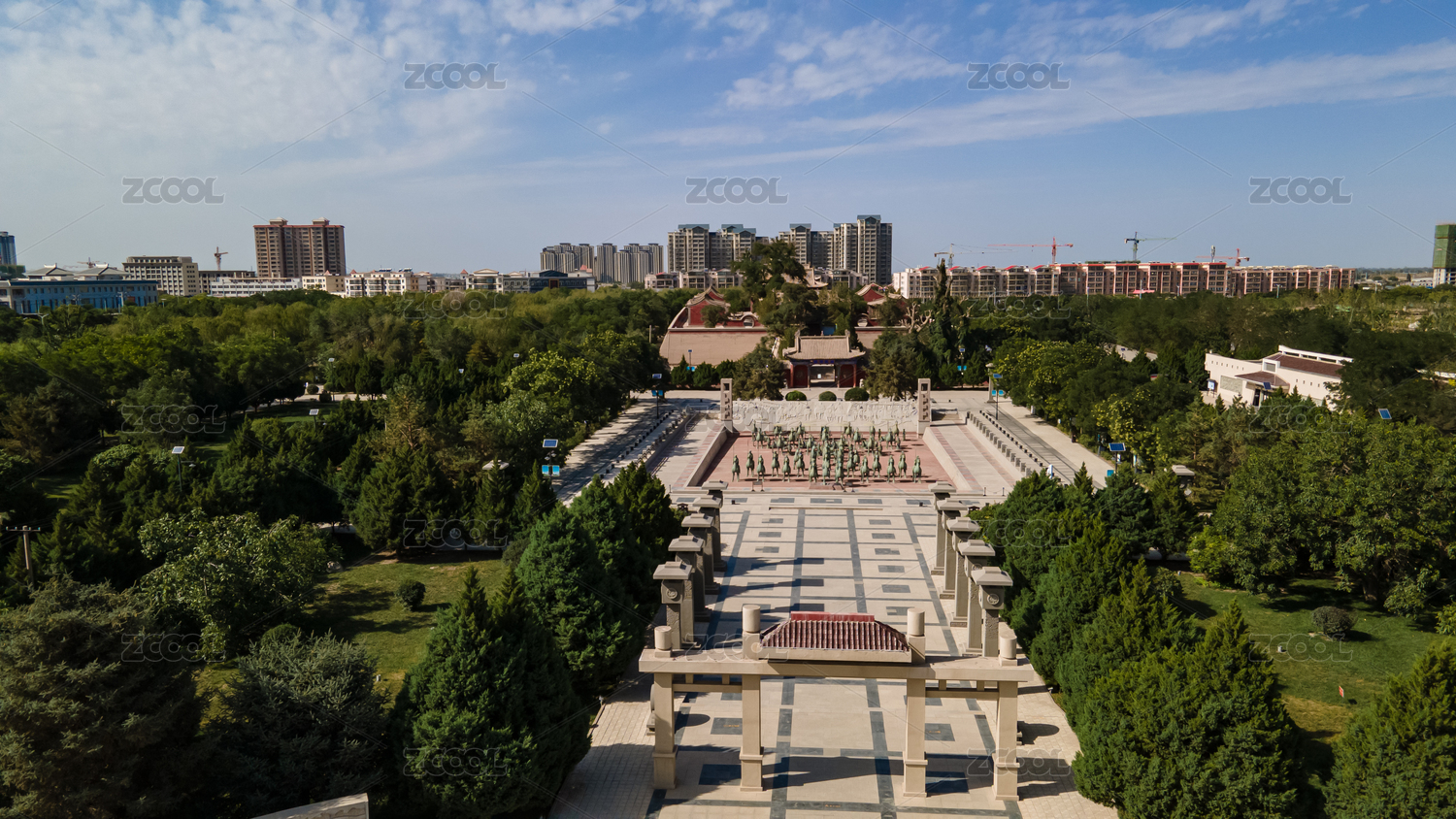 夏季白天航拍江蘇徐州龜山漢墓景區(qū)
