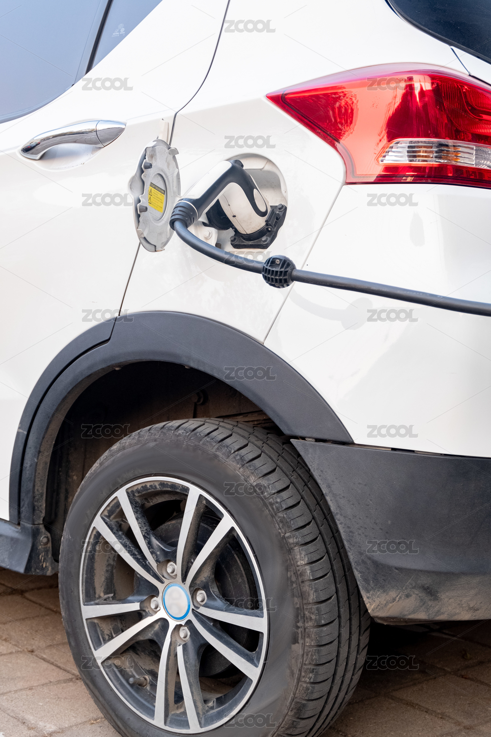 側(cè)面拍攝一輛正在充電的汽車充電插頭